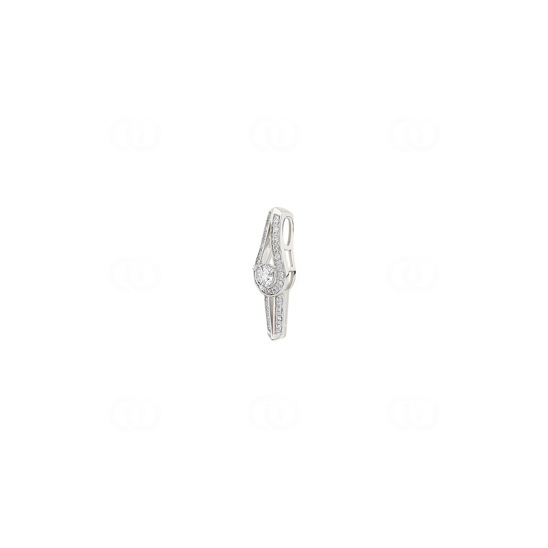 Das Design dieses exquisiten Anhängers aus 18 Karat Gold konzentriert sich auf das Wesentliche: einen zentralen, brillant geschliffenen Diamanten, der im Mittelpunkt zu schweben scheint. Umgeben wird er von zwei geschwungenen Goldbahnen, die seine Brillanz elegant umrahmen und das Auge sanft zur Mitte führen. Diese Bahnen sind mit insgesamt 28 sorgfältig gefassten Diamanten besetzt, die für ein intensives, aber niemals aufdringliches Funkeln sorgen. Dank der unsichtbar auf der Rückseite integrierten Öse kommt die fliessende, harmonische Form des Schmuckstücks makellos zur Geltung.