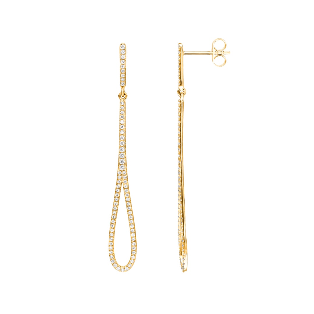 Zwei funkelnde Gefährten, die für gute Laune sorgen: Diese Diamantohrhänger mit Steckverschluss machen in jeder Situation einen guten und fröhlichen Eindruck. Das hochwertige Material besteht aus 750/18 K Gelbgold und harmoniert perfekt mit den 138 funkelnden Diamanten (H/Si Total 0.43ct.). Diese geben dem Schmuckstück eine extravagante Note und lassen Sie auf natürliche Weise glänzen.