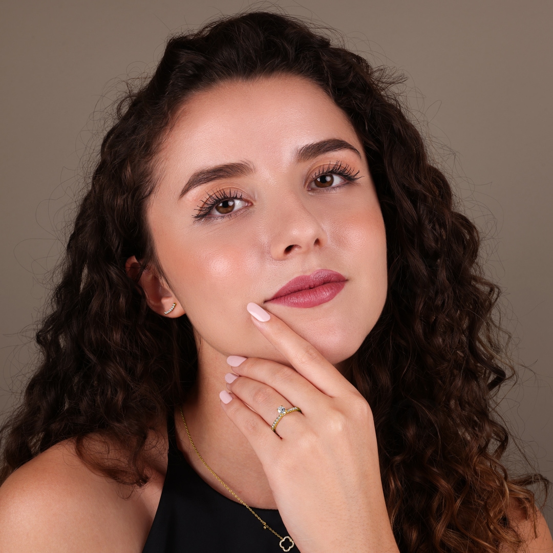 Dieser Solitärring ist nicht nur ein Zeichen der Liebe, sondern auch ein Symbol für Eleganz und Stil. Er verkörpert das Versprechen eines Lebens voller Glück und strahlt dabei eine zeitlose Anziehungskraft aus, die in jeder Situation bewundert wird.