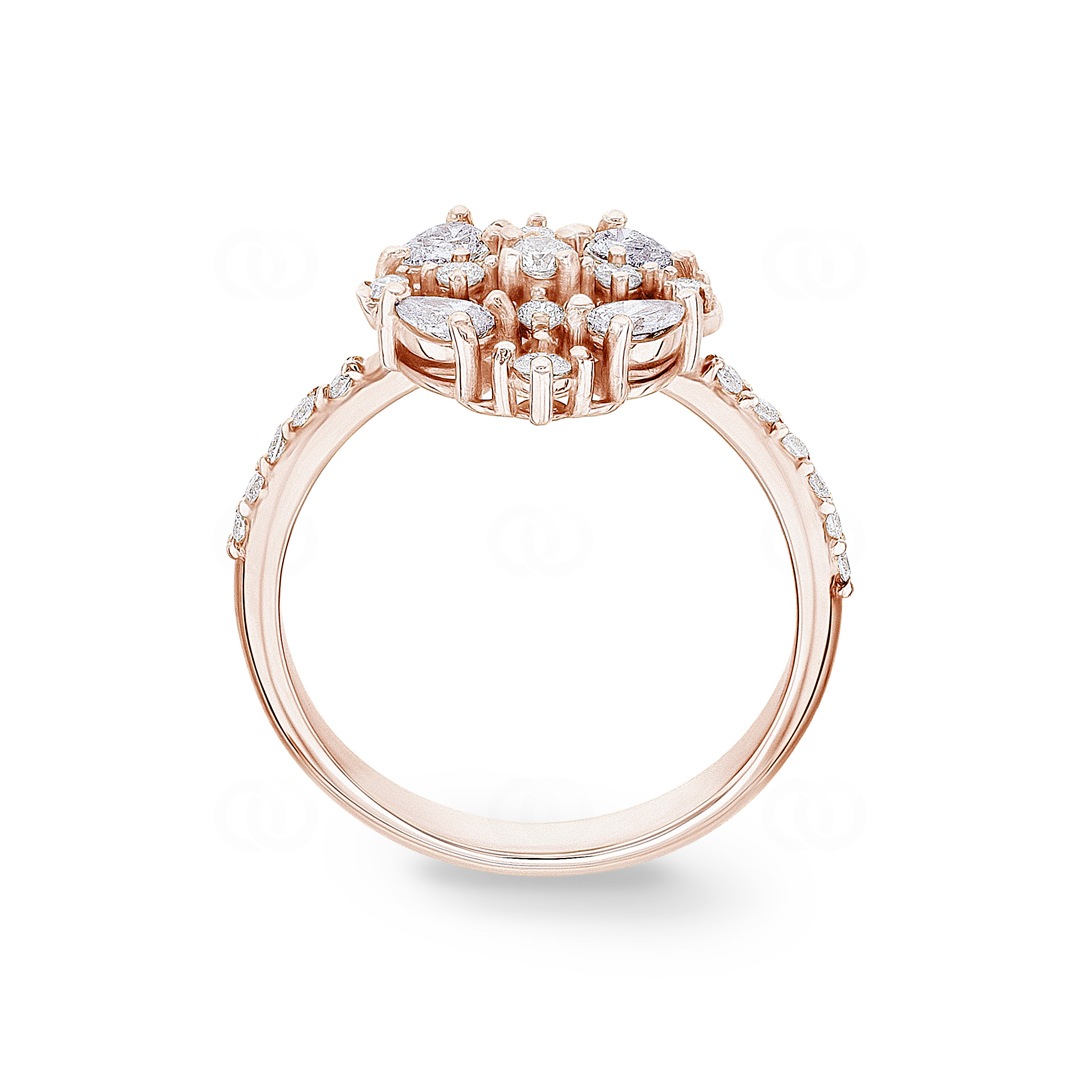 Dieser atemberaubende Cocktailring aus glänzendem 18 Karat Roségold ist ein Meisterwerk, das alle Blicke auf sich zieht und die Sinne verführt. Geschmückt mit insgesamt 19 funkelnden Brillanten und 4 exquisiten Diamanten im edlen Tropfenschliff, bringt er ein beeindruckendes Gesamtgewicht von 0,56 Karat mit sich. Jeder Diamant spielt mit dem Licht auf eine einzigartige Weise, um ein faszinierendes Schauspiel zu erzeugen, das das Auge fesselt und das Herz berührt.