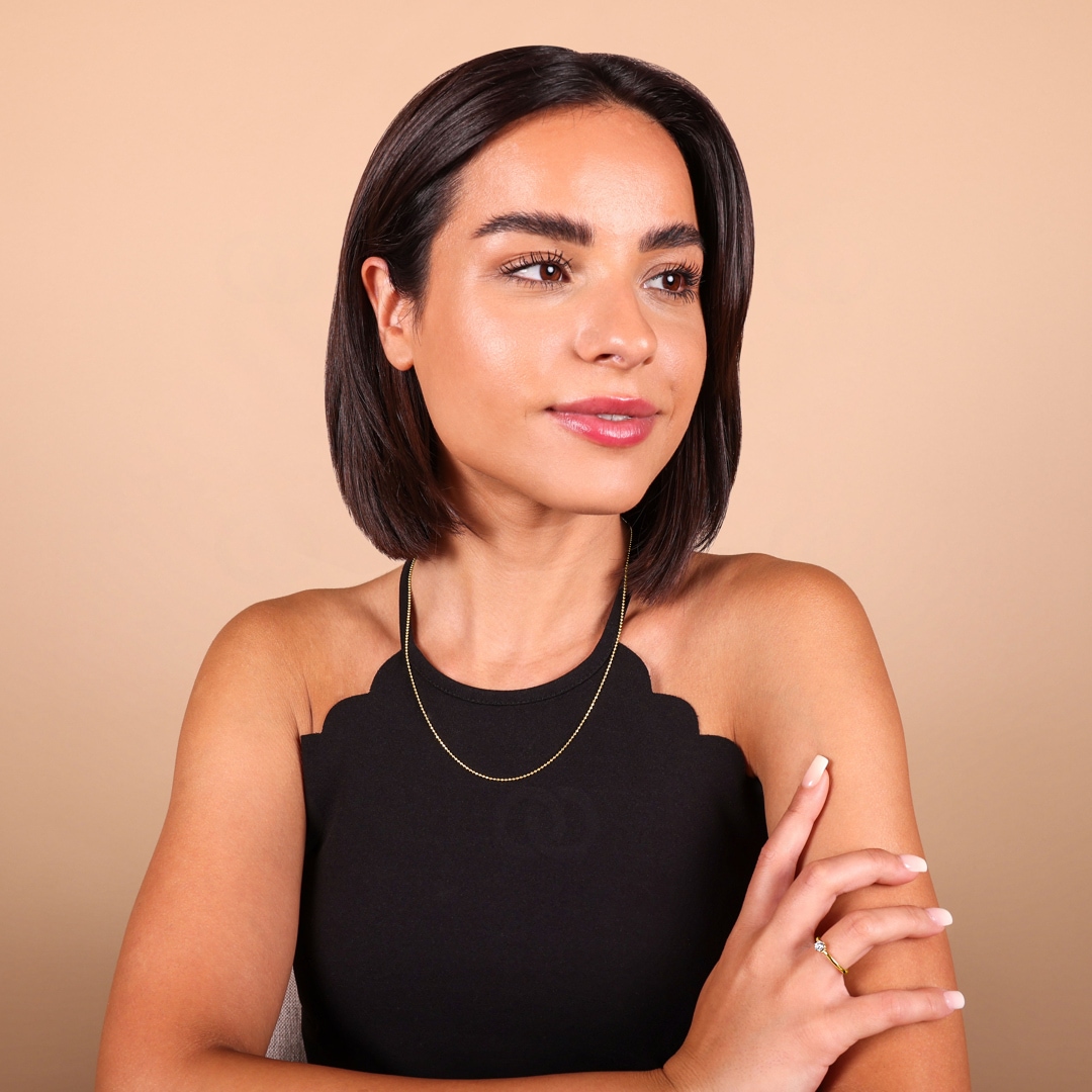 Diese feine Kugelkette aus 18 Karat Gelbgold vereint zeitlose Eleganz mit einem Hauch von Verspieltheit. Die kleinen, gleichmässig aneinandergereihten Kugeln schaffen eine harmonische Struktur und verleihen der Kette eine dezente Lebendigkeit, die sich wunderbar an jedes Outfit anschmiegt. Mit einer Breite von 1.5 mm wirkt sie zart, aber präsent – perfekt für alle, die schlichte Raffinesse lieben. Der Karabinerverschluss sorgt dabei für sicheren Tragekomfort.