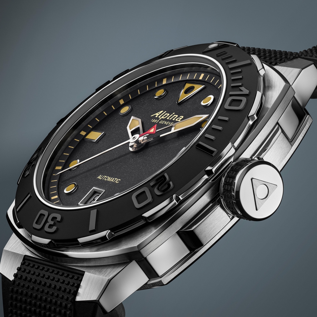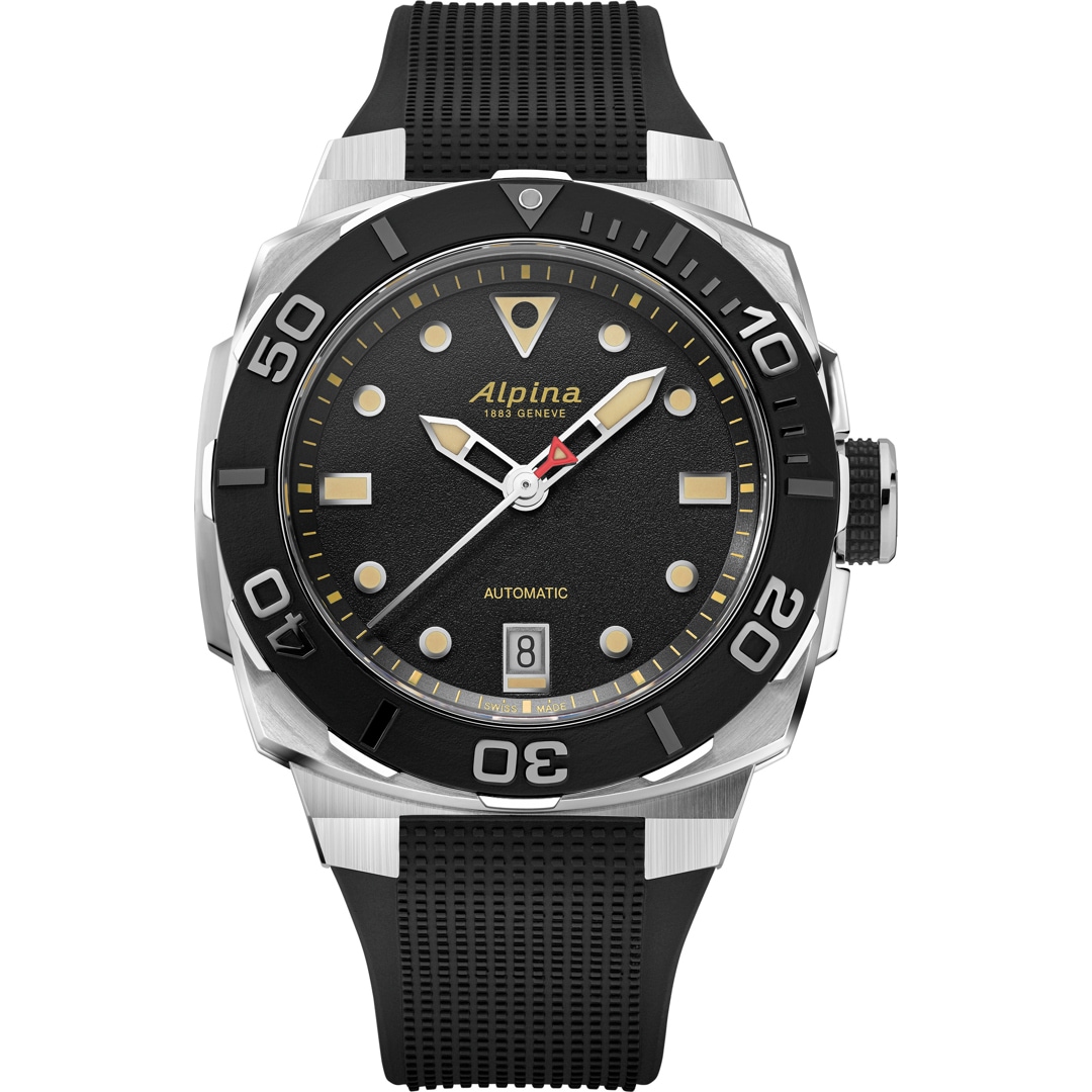 Ein Tribut an die Pioniere der Tiefe und die Abenteurer an Land. Die Alpina Seastrong Diver Extreme Automatic ist mehr als eine Uhr; sie ist ein Statement, das zwei Welten vereint. Inspiriert vom kühnen Geist historischer Taucheruhren, verkörpert sie eine zeitlose Ästhetik, die von Sammlern sehr geschätzt wird. Das robuste 39-mm-Stahlgehäuse, wasserdicht bis 300 Meter, birgt ein präzises Automatikwerk. Grosszügige Leuchtelemente auf Zeigern und Indizes garantieren perfekte Ablesbarkeit in jeder Situation. Am texturierten Kautschukarmband ist dieser Zeitmesser ein verlässlicher Partner für jede Mission – vom Ozean bis zu den Gipfeln der Alpen. Ein Symbol für alle, die das Abenteuer suchen.
