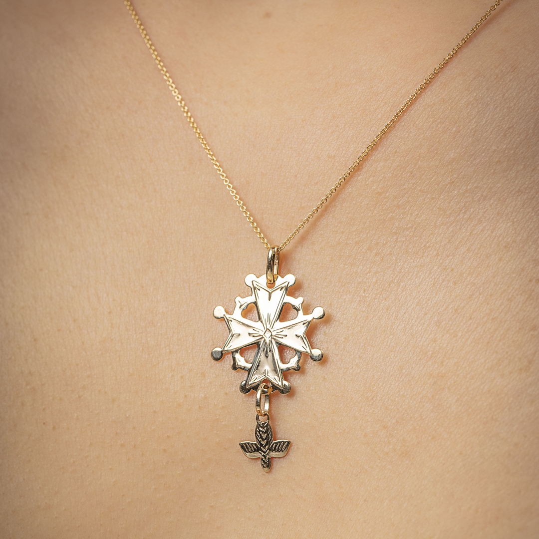 Haben Sie Lust, ein Symbol Ihres Glaubens zur Schau zu stellen und das eher klassische Kreuz zu vermeiden? Warum versuchen Sie es nicht mit diesem wunderschönen 20x32 mm grossen Hugenottenkreuz aus 18-karätigem Gelbgold? Es kommt an jeder dezenten Goldkette zur Geltung und ist dank seiner feinen Details ein perfekter Anhänger, der sich für jeden Anlass eignet!