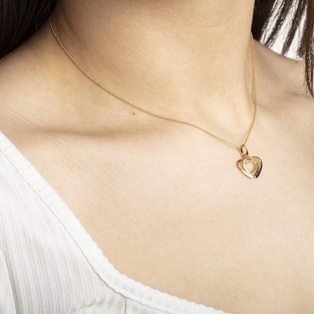 Doppelt hält besser! Mit diesem wunderschönen Anhänger aus Gelbgold sind Sie stets auf der sicheren und stilvollen Seite, denn er besteht aus zwei Herzen, die sich perfekt zusammenfügen und ein stimmiges Gesamtbild ergeben. Dieses aparte Schmuckstück kommt besonders in Kombination mit festlichen Garderoben toll zur Geltung und gibt Ihrem Outfit damit eine elegante und warmherzige Note. Klassisch und dennoch ungewöhnlich!