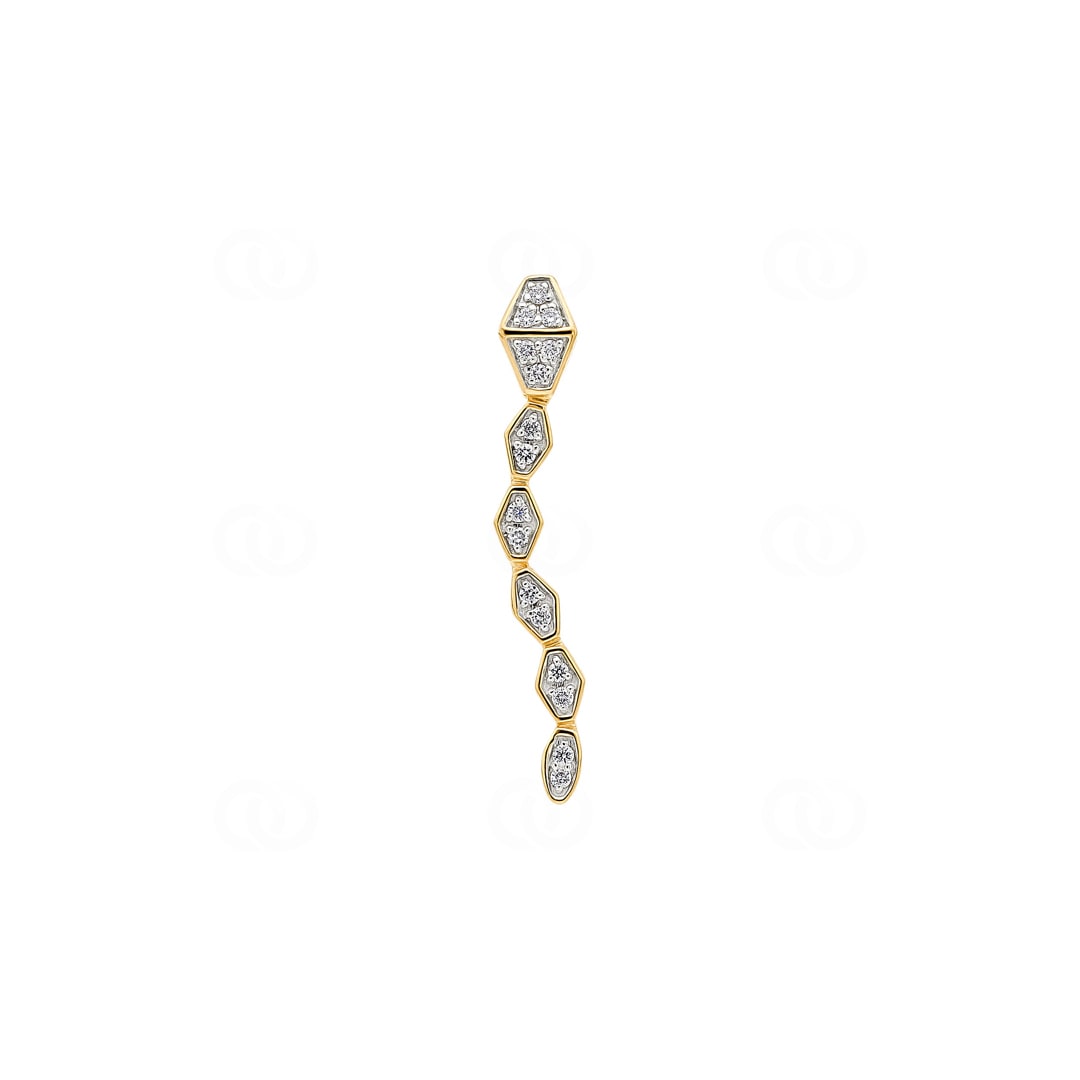 Setzen Sie ein Zeichen von zeitloser Ästhetik und geheimnisvoller Schönheit. Dieser Anhänger aus 18 Karat Gold interpretiert das klassische Schlangen-Motiv in einer besonders schlanken, vertikalen Silhouette. Das Design besticht durch seine moderne Gliederung: Geometrische Segmente reihen sich harmonisch aneinander und zeichnen die geschmeidige Bewegung der Schlange abstrakt nach. Veredelt wird diese feine Linie durch insgesamt 16 Diamanten. Sie füllen die Segmente mit lebendigem Feuer und sorgen dafür, dass der Anhänger bei jedem Lichteinfall dezent, aber wirkungsvoll aufblitzt. Ein Schmuckstück, das pure Raffinesse ausstrahlt und Ihrem Dekolleté eine edle, moderne Note verleiht – perfekt für den stilvollen Auftritt zu jeder Tageszeit.