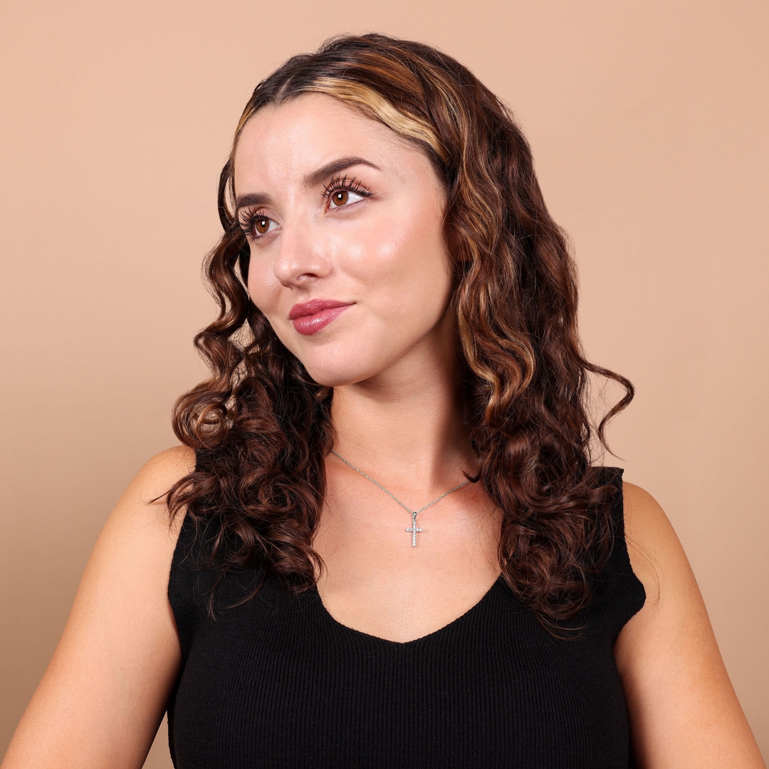 Dieser kreuzförmige, mit Diamanten besetzte Anhänger aus 18 Karat Weissgold ist ein zeitloses Kunstwerk. Die filigrane Silhouette und die funkelnden Diamanten verleihen Ihrem Outfit einen Hauch von Charme und Glamour. Dieses elegante und raffinierte Schmuckstück verkörpert Ihren Glauben und lässt sich wunderbar mit zahlreichen Outfits kombinieren, sei es im Alltag oder zu besonderen Anlässen. Lassen Sie dieses strahlende Kreuz Ihr inneres Licht widerspiegeln. Selbstverständlich verfügen alle Diamantanhänger über ein Echtheitszertifikat und werden in einer eleganten Schmuckbox geliefert.