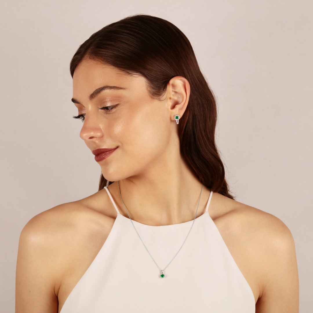 Anhänger 750/18 K Weissgold mit Smaragd oval und Diamanten 0.11 ct H/si