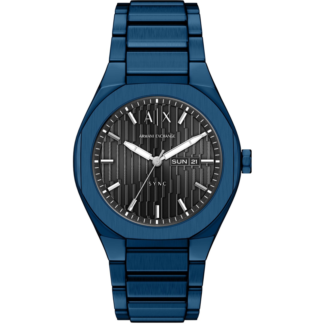 Das Modell Sync von Armani Exchange zeichnet sich durch klare Struktur und moderne Aspekte aus. Das Gehäuse aus Edelstahl, Mineralglas und 50 Meter Wasserdichtigkeit gehören ebenso wie das hochwertige Armband zu den Qualitätsmerkmalen dieser Herrenuhr von Armani Exchange, die perfekt lässige Sportlichkeit und cooles Design vereint. Datumsanzeige sowie Wochentagsanzeige sind mit an Board. Reisen Sie mit Stil, geniessen Sie ihre freien Tage im Urlaub oder glänzen Sie während der Arbeit.