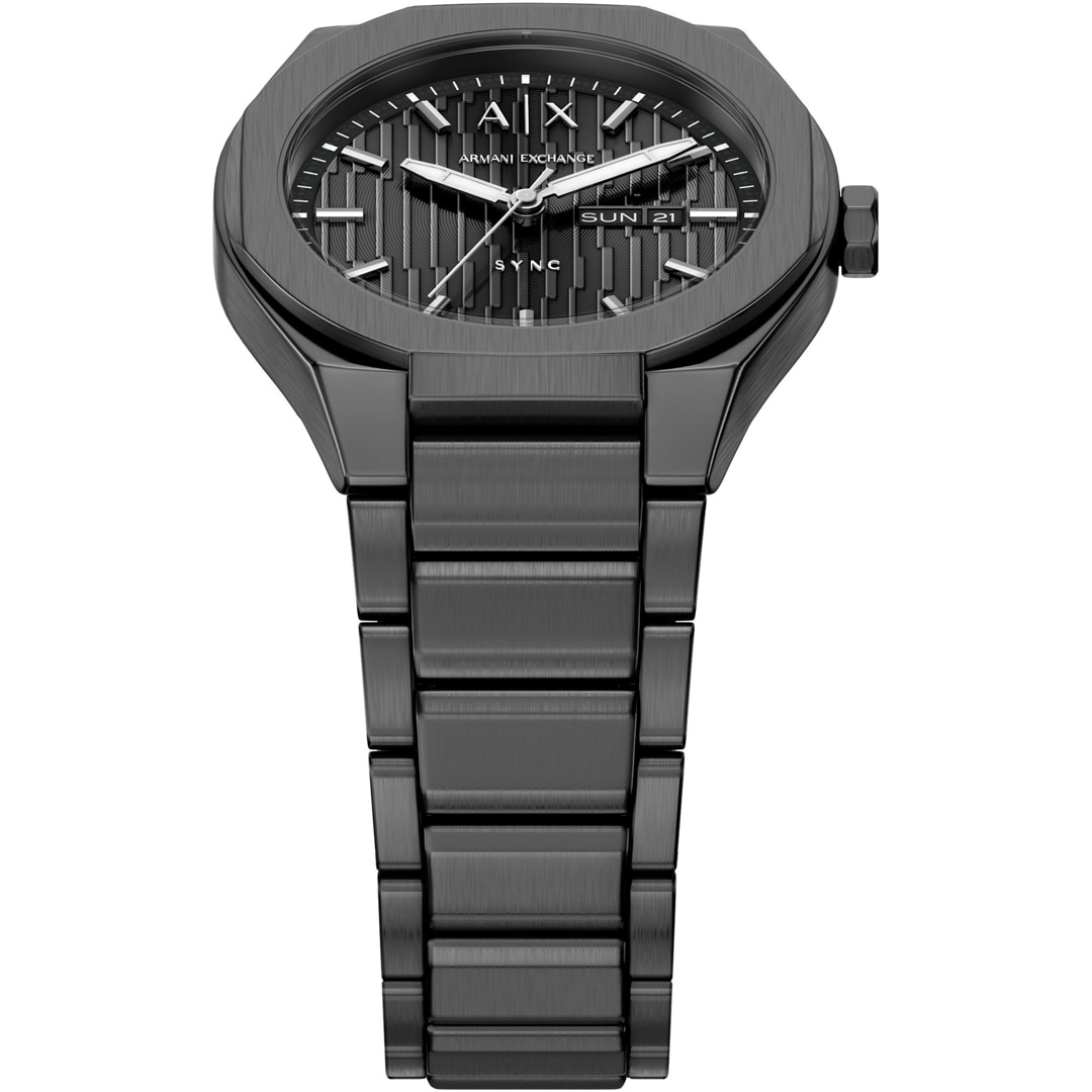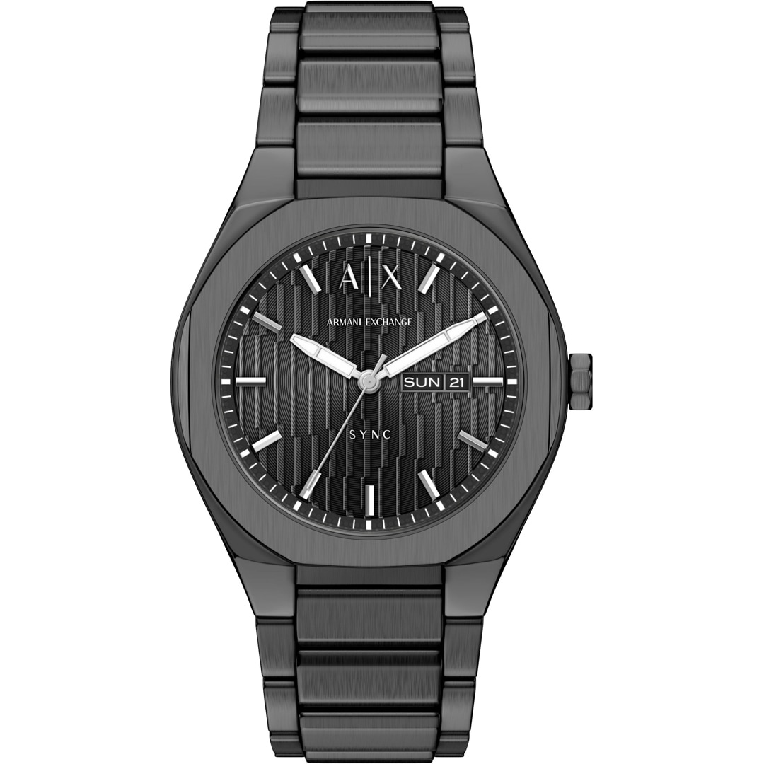 Das Modell Sync von Armani Exchange zeichnet sich durch klare Struktur und moderne Aspekte aus. Das Gehäuse aus Edelstahl, Mineralglas und 50 Meter Wasserdichtigkeit gehören ebenso wie das hochwertige Armband zu den Qualitätsmerkmalen dieser Herrenuhr von Armani Exchange, die perfekt lässige Sportlichkeit und cooles Design vereint. Datumsanzeige sowie Wochentagsanzeige sind mit an Board. Reisen Sie mit Stil, geniessen Sie ihre freien Tage im Urlaub oder glänzen Sie während der Arbeit.
