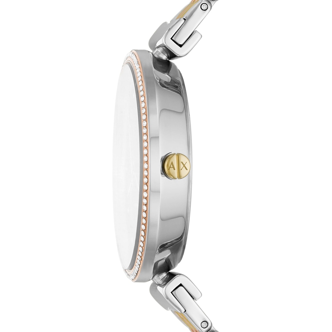 Die Zoe von Armani Exchange ist eine elegante Verbindung von Glamour und Zierlichkeit. Das Edelstahlgehäuse sowie das edle Armband zeichnen das Design dieser Uhr aus. Die Zoe erinnert durch ihr schlichtes Design an ein Schmuckstück und fungiert somit als perfektes Accessoire einer Frau. Ihre weichen, runden Formen versprühen eine extra Note Charme.