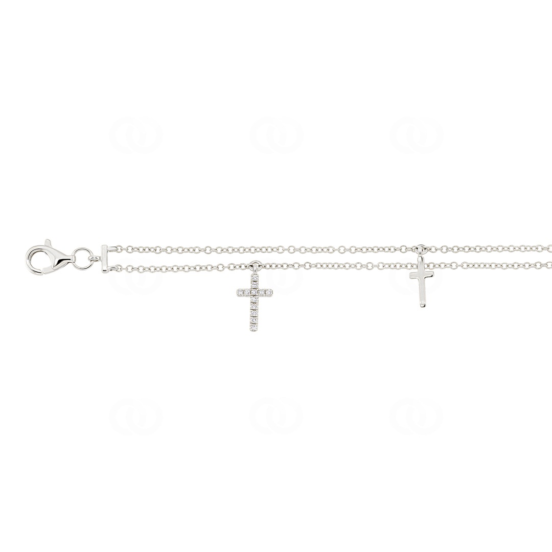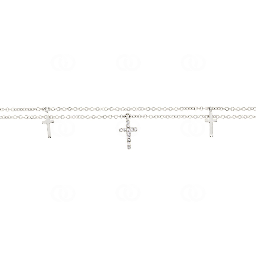 Doch das wahre Highlight sind die fünf wunderschönen Kreuzanhänger, die das Armband schmücken und ihm eine spirituelle Dimension verleihen. Drei dieser Kreuze sind mit insgesamt 36 funkelnden Diamanten besetzt, die im Licht glitzern und die Blicke auf sich ziehen. Diese Diamanten symbolisieren nicht nur äusseren Glanz, sondern auch innere Stärke und Schönheit, die in jedem von uns schlummert.