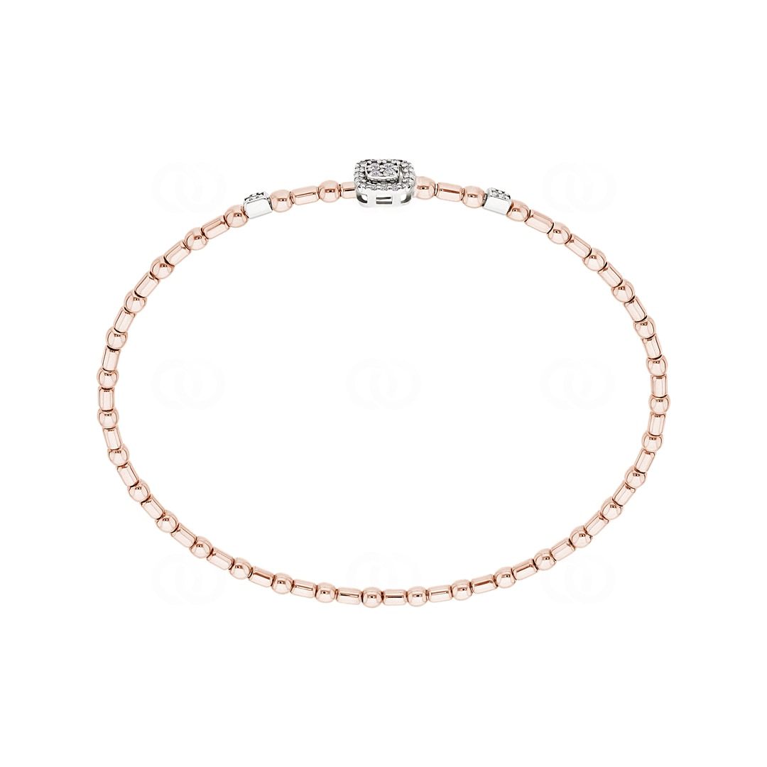 Entdecken Sie die harmonische Fusion aus Eleganz und Raffinesse mit unserem exquisiten Armreif aus 18 Karat Roségold. Dieses Kunstwerk der Juwelierkunst besticht durch seine vielfältigen Formen und die kunstvoll eingearbeiteten Elemente aus Weissgold an beiden Enden. Jedes dieser Elemente ist mit funkelnden Diamanten besetzt und dient gleichzeitig als innovativer Verschluss des Armreifs, der durch sein ineinandergreifendes Design perfekt geschlossen wird.