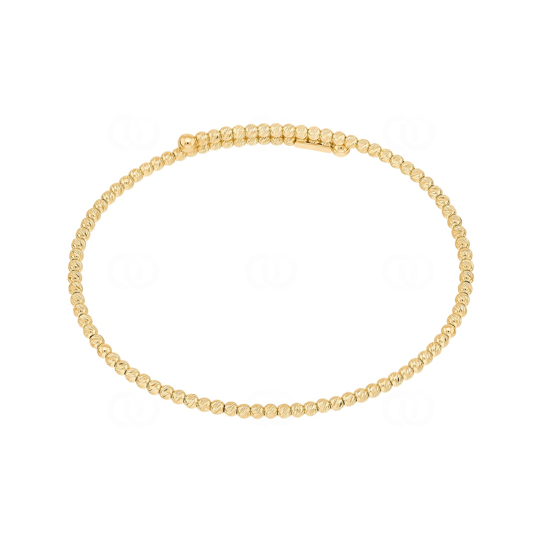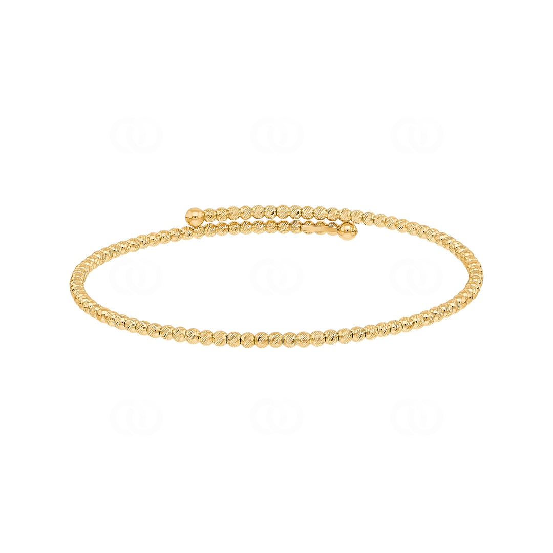 Bringen Sie Ihr Handgelenk zum Strahlen mit diesem flexiblen Armreif aus 750/18 Karat Gelbgold. Das Design fokussiert sich ganz auf die spezielle Struktur der Oberfläche, die dem Edelmetall eine aufregende Tiefe verleiht. Jede einzelne Kugel ist aufwendig diamantiert und bricht das Licht in unzählige kleine Reflexe. Dadurch entsteht ein intensives und warmes Funkeln, das bei jeder Bewegung lebendig wirkt. Neben der glamourösen Optik überzeugt der Reif durch seine clevere Konstruktion. Ein unsichtbarer Kern aus Titan macht das Schmuckstück wunderbar elastisch, sodass es sich ganz einfach anlegen lässt und stets bequem sitzt. Es ist die ideale Wahl für alle, die unkomplizierten Tragekomfort mit einem effektvollen Auftritt verbinden möchten.
