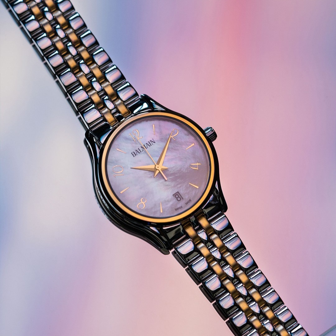 Die Uhren von Balmain, mit dem prestigeträchtigen Label Swiss Made, werden in Saint-Imier hergestellt, der Wiege der traditionellen Uhrmacherkunst im Herzen des Jura. Alle Balmain-Uhren erfüllen die gleichen strengen Qualitätskriterien: Sie sind erhältlich in preiswerten Edelstahl Ausführungen, aufwendigen goldigen oder rosafarbenen PVD Beschichtungen bis hin zu extravaganten Verzierungen mit Diamanten. Jedes Detail ist perfekt verarbeitet, passt auf den roten Teppich der Stars oder auf den Bürgersteig der Stadt und ergänzt den dynamischen männlichen und weiblichen Lebensstil von heute. Die Dekoration mit Arabesken ist ein charakteristischer Akzent im Design der Zeitmesser. Balmain-Uhren setzen sich dafür ein, die Tradition der massgeschneiderten Zeit in die Zukunft zu tragen. Schweizer Uhrmacherkompetenz und Innovation haben zu Kollektionen geführt, die die Raffinesse und den Reiz der Haute Couture genau widerspiegeln. Kühne, attraktive Formen prägen die Handschrift der Uhren. Die Geschichte der Uhrenmarke umfasst eine Reihe von Premieren und Aufsehen erregenden Ausführungen. In den 1990er Jahren setzte Balmain in noch nie dagewesener Weise Diamantfassungen in Uhrengehäusen aus Stahl ein. 1998 präsentierte die Chronolady den weltweit kleinsten Chronographen für eine Damenuhr.