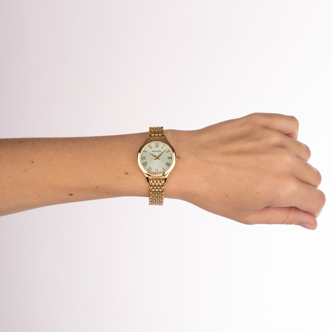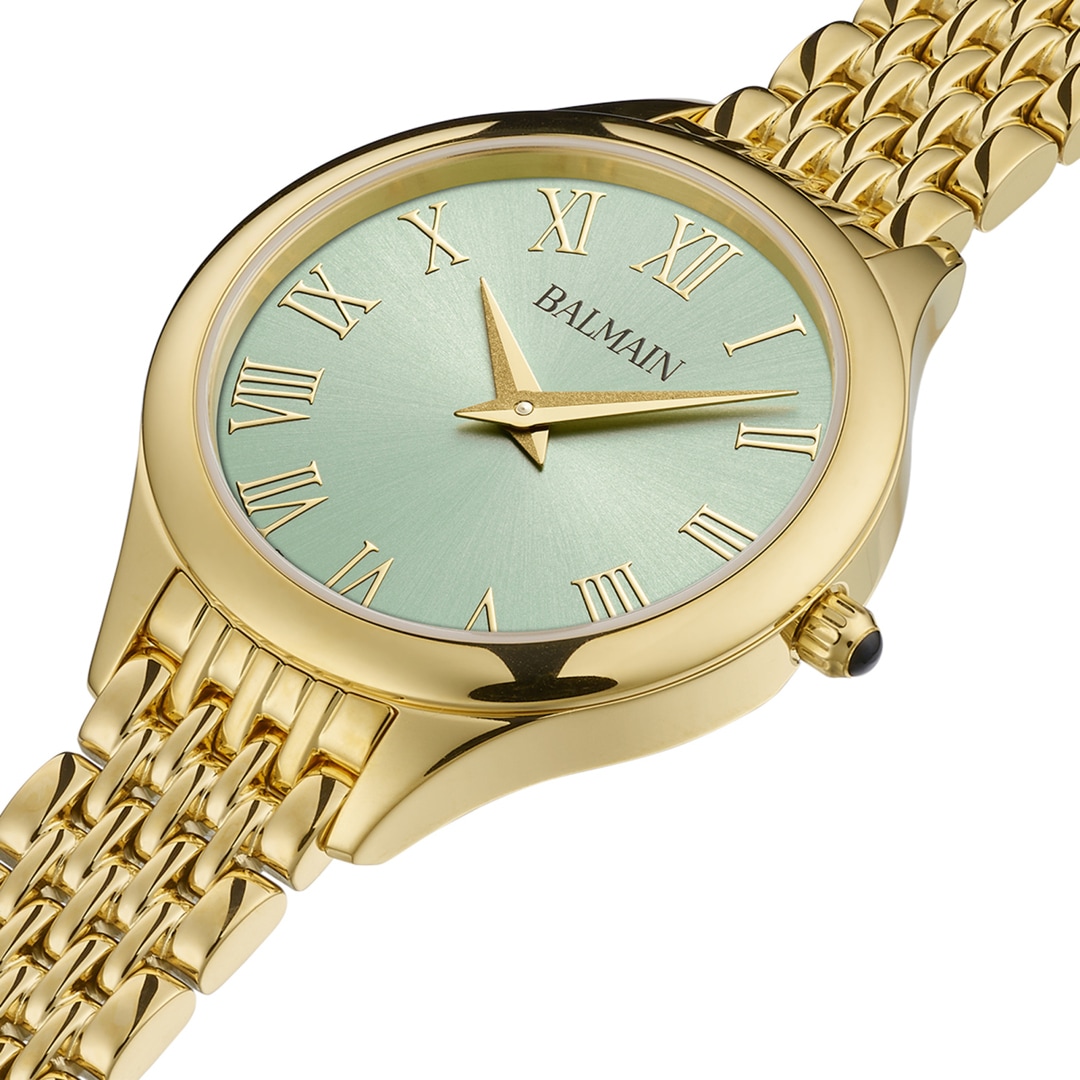 Die Uhren von Balmain, mit dem prestigeträchtigen Label Swiss Made, werden in Saint-Imier hergestellt, der Wiege der traditionellen Uhrmacherkunst im Herzen des Jura. Alle Balmain-Uhren erfüllen die gleichen strengen Qualitätskriterien: Sie sind erhältlich in preiswerten Edelstahl Ausführungen, aufwendigen goldigen oder rosafarbenen PVD Beschichtungen bis hin zu extravaganten Verzierungen mit Diamanten. Jedes Detail ist perfekt verarbeitet, passt auf den roten Teppich der Stars oder auf den Bürgersteig der Stadt und ergänzt den dynamischen männlichen und weiblichen Lebensstil von heute. Die Dekoration mit Arabesken ist ein charakteristischer Akzent im Design der Zeitmesser. Balmain-Uhren setzen sich dafür ein, die Tradition der massgeschneiderten Zeit in die Zukunft zu tragen. Schweizer Uhrmacherkompetenz und Innovation haben zu Kollektionen geführt, die die Raffinesse und den Reiz der Haute Couture genau widerspiegeln. Kühne, attraktive Formen prägen die Handschrift der Uhren. Die Geschichte der Uhrenmarke umfasst eine Reihe von Premieren und Aufsehen erregenden Ausführungen. In den 1990er Jahren setzte Balmain in noch nie dagewesener Weise Diamantfassungen in Uhrengehäusen aus Stahl ein. 1998 präsentierte die Chronolady den weltweit kleinsten Chronographen für eine Damenuhr.