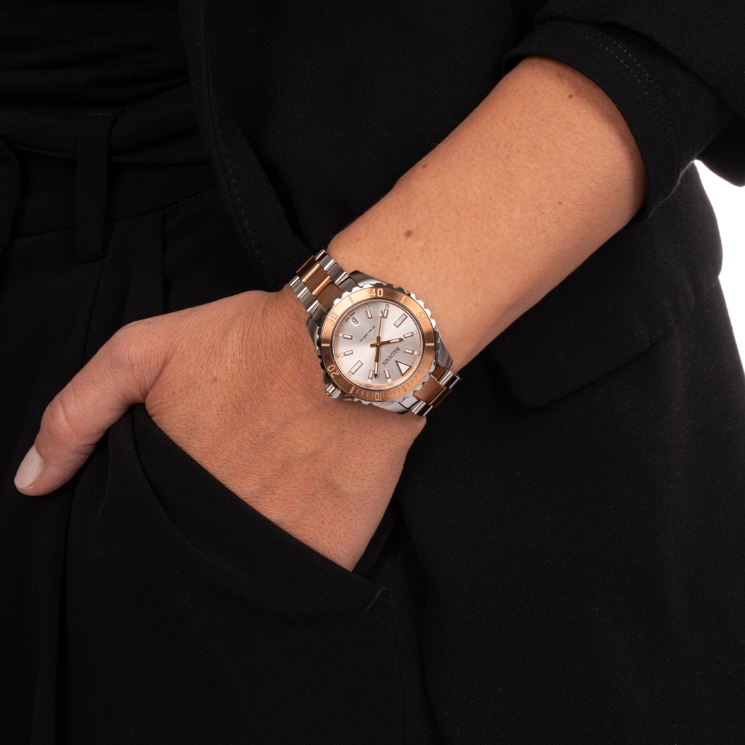 Die Kollektion Ophrys von Balmain besticht mit einer sportlichen Silhouette, die auf sehr feminine Weise die Codes von Taucheruhren wieder aufgreift. Die Modelle verfügen über eine verschraubte Krone, eine drehbare Lünette sowie eine Wasserdichtigkeit bis zu 20 bar (200 Meter). All diese technischen Eigenschaften zeugen von ihrem maritimen Charakter.