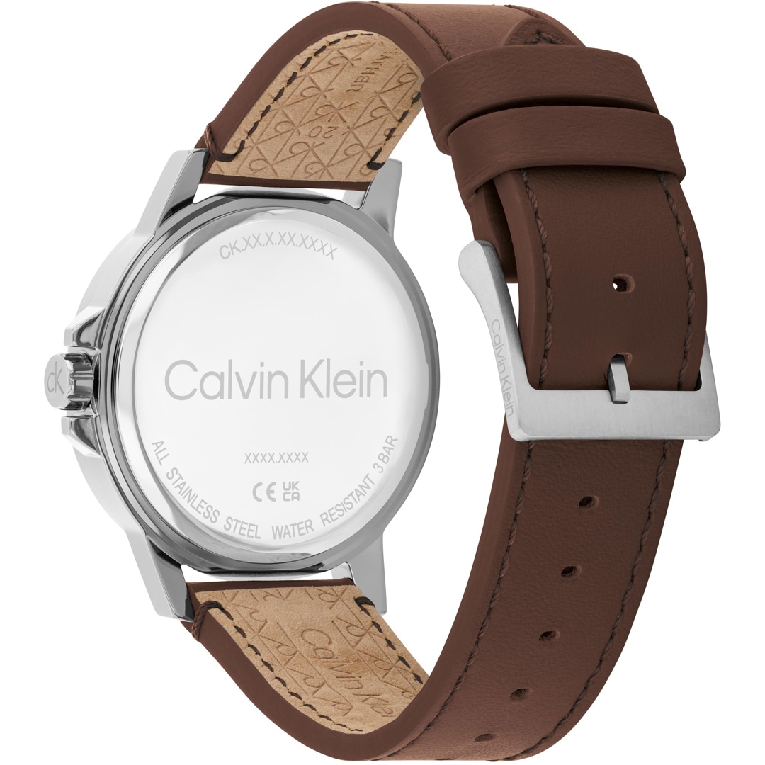 Sportive Calvin Klein Uhr mit Quarzuhrwerk. Die Herrenuhr aus Edelstahl präsentiert sich im dynamischen Design. Hochwertiges Accessoire mit passendem Armband, welches markanten Stil und hohen Tragekomfort vereint.