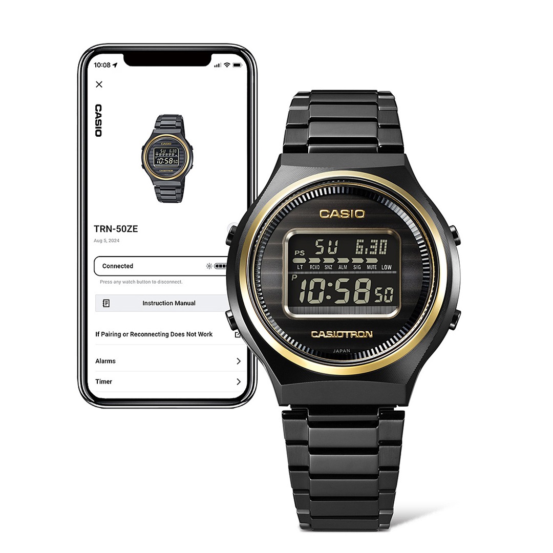 Die CASIOTRON TRN-50ZE verkörpert den Geist der Handwerkskunst, inspiriert von der Begeisterung, etwas aus dem Nichts zu machen - den Nervenkitzel, von "0" auf "1" zu kommen - die totale Kreativität, die der Welt die allererste CASIOTRON im Jahr 1974 bescherte. Die CASIOTRON war nicht nur die erste Armbanduhr von CASIO, sondern auch die erste Digitaluhr der Welt mit automatischer Kalenderfunktion.