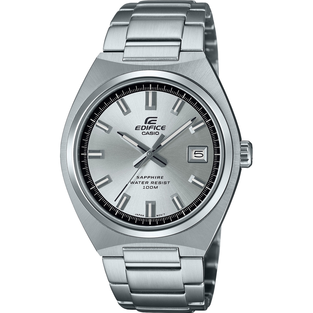 EDIFICE präsentiert eine analoge Uhr, die vom Motorsport inspiriert ist und mit klassischen Stunden-, Minuten- und Sekundenzeigern überzeugt. Die schmale, hochglanzpolierte Lünette und das runde Edelstahlgehäuse mit strahlenförmigem Haaransatz bilden eine perfekte Kombination aus einem klassischen Look und solider Haptik. Dank des robusten Edelstahlbands, des Saphirglases und der 10-bar-Wasserdichtigkeit bist du bestens für alles gerüstet, was kommt.