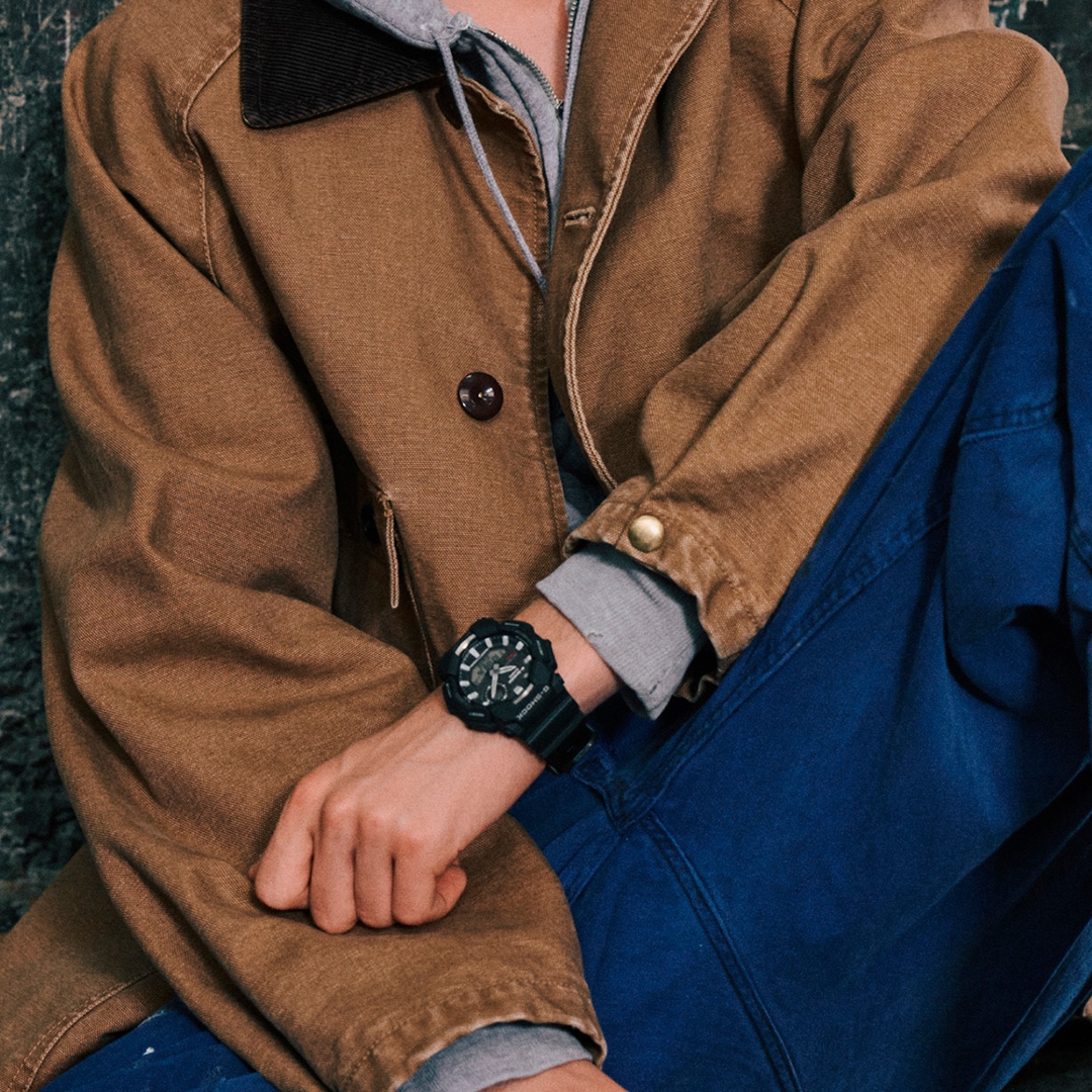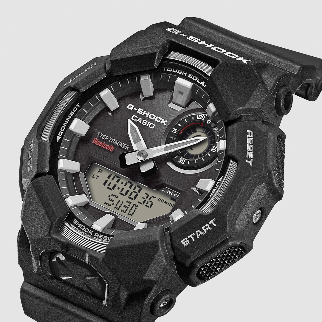 Mach dich bereit für die erste G-SHOCK, die deine Schritte zählt und digital anzeigt – ganz ohne Batteriewechsel, nur mit Solarenergie. Die Analog-Digital-Kombination GA-B010 verfügt über ein grosses Gehäuse mit einem grossen, gut ablesbaren Display. Detaillierte Veredelungen - ein Lünettenring mit Aufdampflackierung, eine Sonnenstrahlveredelung für das Zifferblatt und ein Metallic-Finish für das Einlegezifferblatt - werten das robuste Design zusätzlich auf.