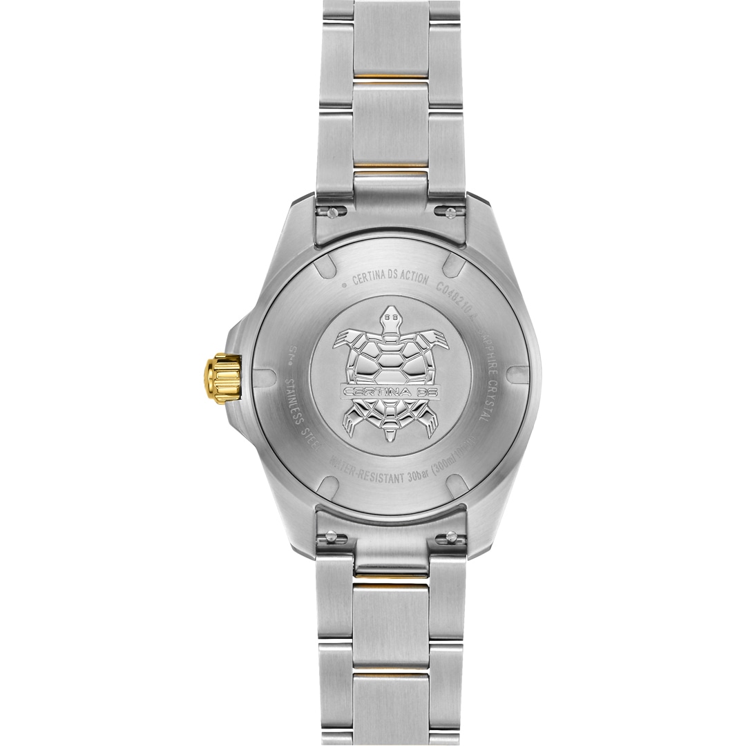 Die Schweizer Uhrenmarke Certina – «Swiss time maker 1888» – steht für hohe Qualität kombiniert mit moderner Technologie und einem einzigartigen Uhrendesign, das Sport und Eleganz harmonisch verbindet. Zum Einsatz kommen nur hochwertige Materialien und das Certina Double Security Concept (DS+), das für Wasserdichtheit und Stoßbeständigkeit bürgt: Es schützt die Uhren mit einem extrastarken Saphirglas und einem verstärkten Gehäuseboden.