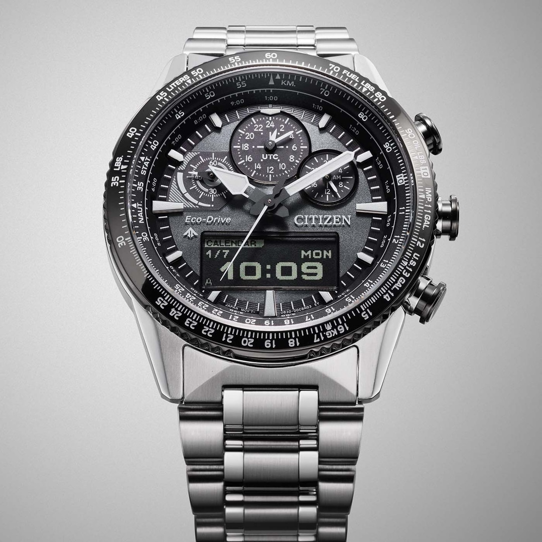 Zudem ermöglicht das neue Display einen schnellen sowie intuitiven Zugriff auf die Weltzeit und unterstützt damit sowohl Weltreisende als auch Luftfahrtprofis. Ausserdem an Bord: Ein Chronograph (Stoppuhr), dessen Zeitmessung schnell und komfortabel auf dem Display abzulesen ist, sowie die Möglichkeit, mehrere Alarme für verschiedene Zeiten und Tage einzustellen.