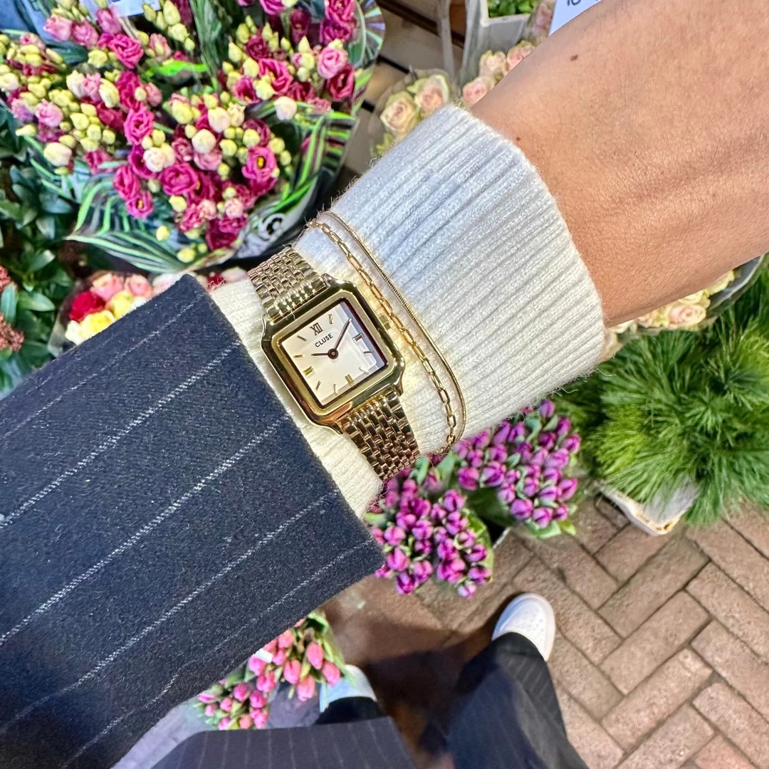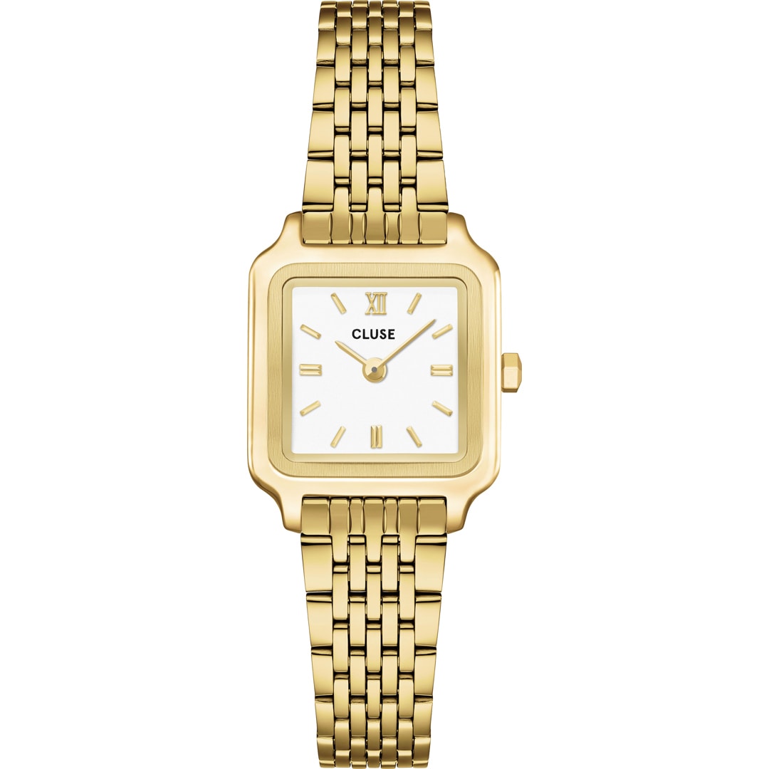 Verleihen Sie Ihrem Look mit der Gracieuse Mini Uhr für Damen einen Hauch von Luxus und Eleganz. Mit einem quadratischen, 21-mm-Gehäuse, einem eleganten Zifferblatt und einem 12-mm-Edelstahlarmband mit drei Gliedern. Passen Sie das Aussehen Ihrer Uhr ganz einfach mit jedem CLUSE 12-mm-Uhrenarmband an. Sie können die Grösse des Armbandes ganz einfach selbst einstellen.