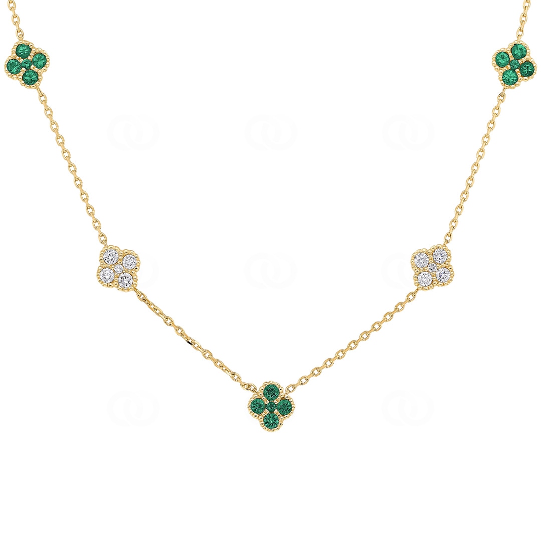 Collier 750/18 K Gelbgold Kleeblätter mit Smaragden & Diamanten 0.33 ct H/si