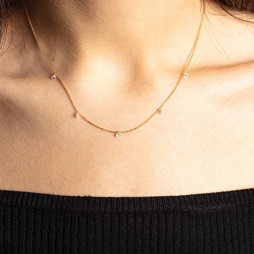 Eleganter Schmuck versinnbildlicht weiblichen Chic, was sich einmal mehr im Design dieser zarten Collier-Kette widerspiegelt. Fünf Brillanten zieren die 18 Karat Gelbgold-Kette. Filigran und doch imposant – so lieben stilbewusste Damen Schmuckstücke. Das kombinierbare Collier sieht zum Wollpullover mindestens genauso bezaubernd aus wie zum Cocktailkleid. In massivem 18 Karat Gelbgold gehüllt, ist dieses Collier leicht und gleichzeitig elegant. Der praktische Karabinerverschluss ermöglicht ein einfaches und sicheres Schliessen der Kette, welche eine Gesamtlänge von 42 cm hat. Selbstverständlich besitzen sämtliche Diamantcolliers ein Echtheitszertifikat und werden in einer edlen Schmuckbox geliefert.