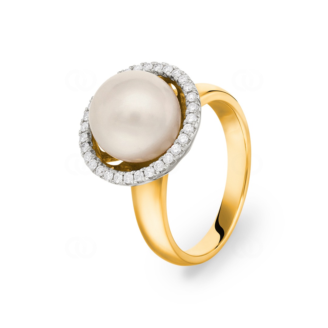 Cocktailring 750/18 K Gelbgold mit Süsswasserzuchtperlen & Diamanten 0.21 ct H/Si Ø 54