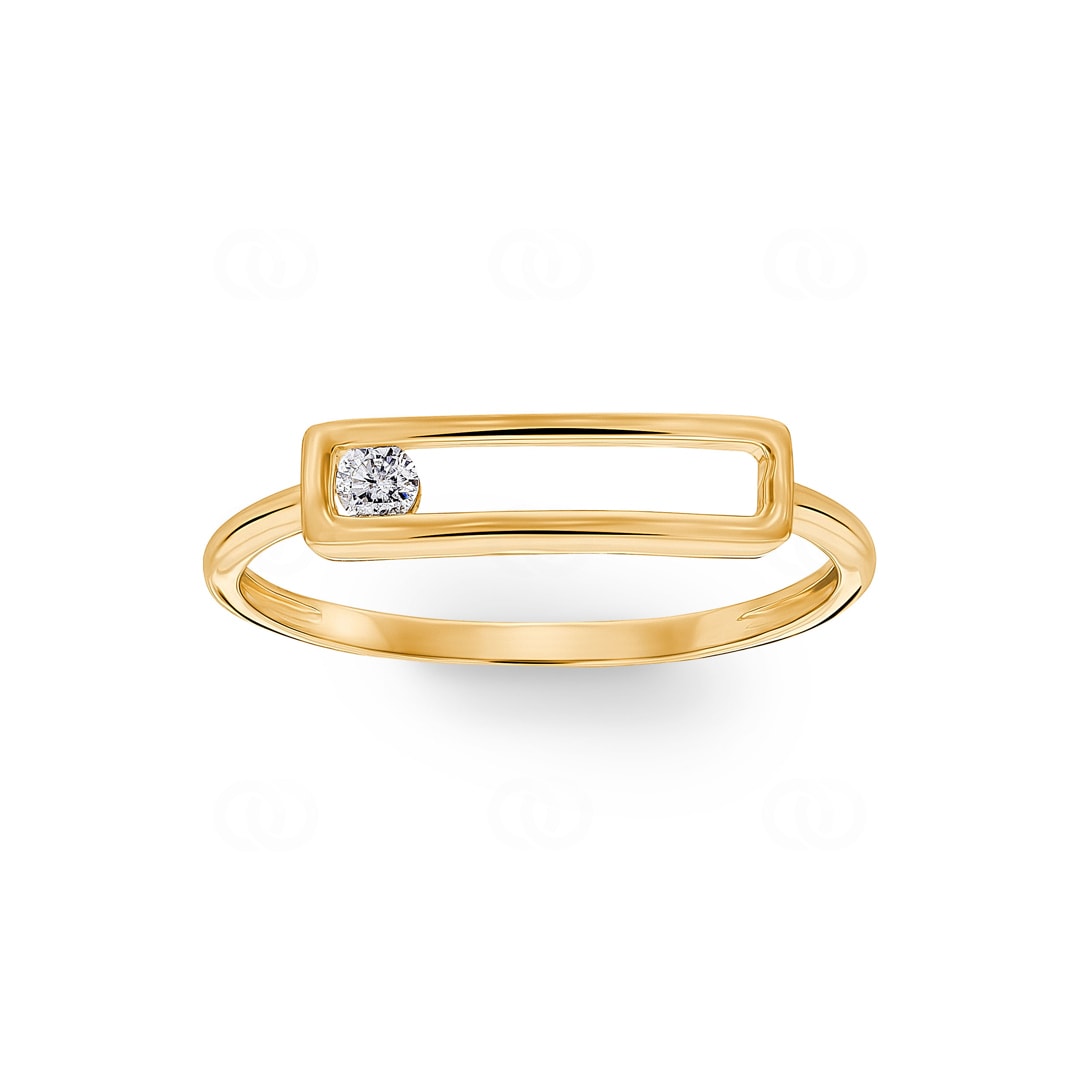 Dieser elegante Gelbgoldring zeichnet sich durch seine rechteckige Form aus, in der ein strahlender Diamant 0,05 ct, H/P1 perfekt in einer Kanalfassung sitzt. Die klare Linienführung des rechteckigen Designs verleiht dem Ring eine moderne, geometrische Ästhetik, während der funkelnde Diamant einen dezenten, aber wirkungsvollen Glanz verleiht. Dieses Schmuckstück verbindet stilvolle Schlichtheit mit luxuriösem Glanz und ist ideal für diejenigen, die nach einem raffinierten und zugleich zeitlosen Accessoire suchen.