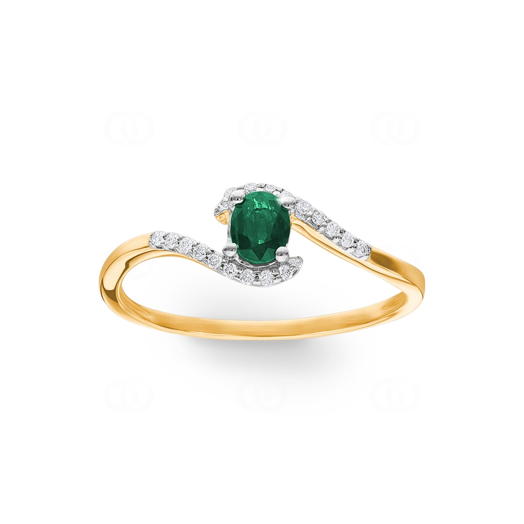 Damenring 750/18 K Gelbgold mit Smaragd oval und Diamanten 0.07 ct H/si