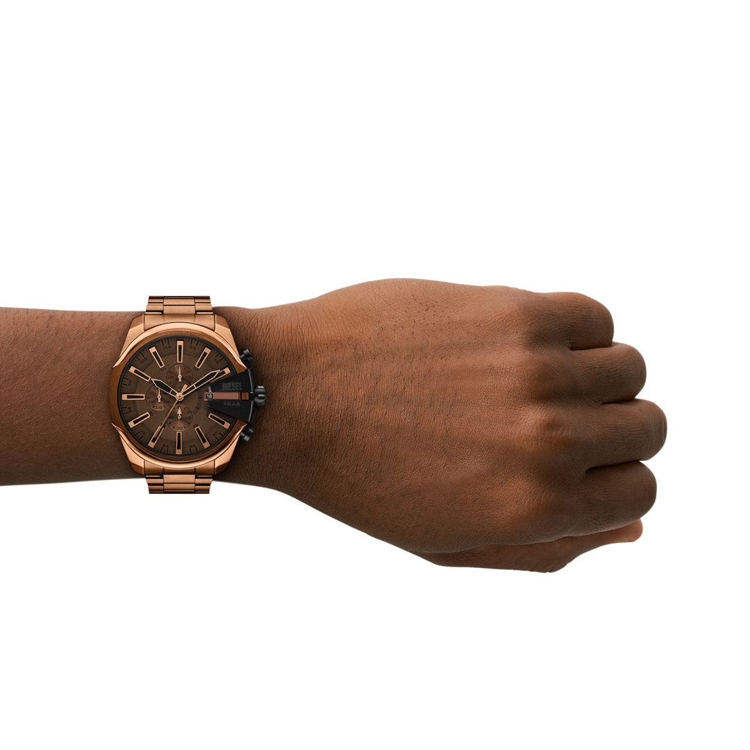 Dieser markante Herrenchronograph beweist seine Männlichkeit unzweifelhaft und nachdrücklich – nicht nur durch seinen „only the brave“ Schriftzug auf dem Zifferblatt. Die neue, 30 % dünnere Mega Chief-Armbanduhr verfügt über ein braunes Ziffernblatt mit Balkenindizes und gleichfarbigen Tracking-Anzeigen. Die stylishe Chronograph-Anzeige und das Armband verleihen dem Design einen dynamischen Look.