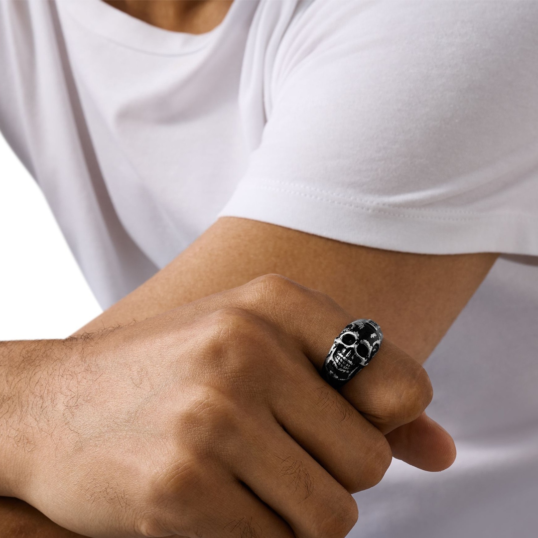 Der Diesel Totenkopf Ring ist das perfekte Accessoire für junge dynamische Menschen, die ihrem Style das gewisse Extra verleihen möchten. Dieser Diesel-Ring aus Edelstahl verfügt über einen klassischen Totenkopf. Der schwarze Edelstahl zeigt einen viel getragenen ikonischen Look durch die absichtliche „abgeplatzte“ Beschichtung. Mit seinem robusten Design und der coolen Optik ist der Diesel Ring ein echter Hingucker und verleiht jedem Outfit das gewisse Etwas. Kombiniere ihn mit anderen Schmuckstücken von Diesel, oder trage ihn alleine für einen einzigartigen Look, der Dich von der Masse abhebt. Entdecke jetzt diesen Diesel Ring und bringe Deinen Style auf ein neues Level!