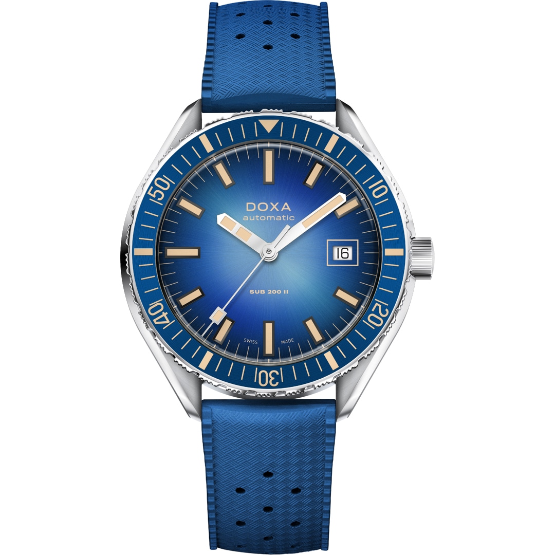 Legenden stehen niemals still. Die DOXA SUB 200 II beweist dies eindrucksvoll und führt eine wahre Taucheruhren-Ikone selbstbewusst in die Zukunft. Sie verbindet auf meisterhafte Weise professionelle Zuverlässigkeit mit urbaner Eleganz. Dank ihres raffiniert verschlankten Profils schmiegt sich das hochwertige Edelstahlgehäuse unvergleichlich komfortabel an Ihr Handgelenk. Unter dem entspiegelten Saphirglas im klassischen „Glass Box“-Design verbirgt sich ein ausdrucksstarkes Zifferblatt von bestechender Klarheit. Ob im Alltag oder beim Tauchgang: Auf die präzise Lünette, absolute Wasserdichtigkeit und das Schweizer Automatikwerk ist jederzeit Verlass. Ihr stilvoller Begleiter für jedes Abenteuer!