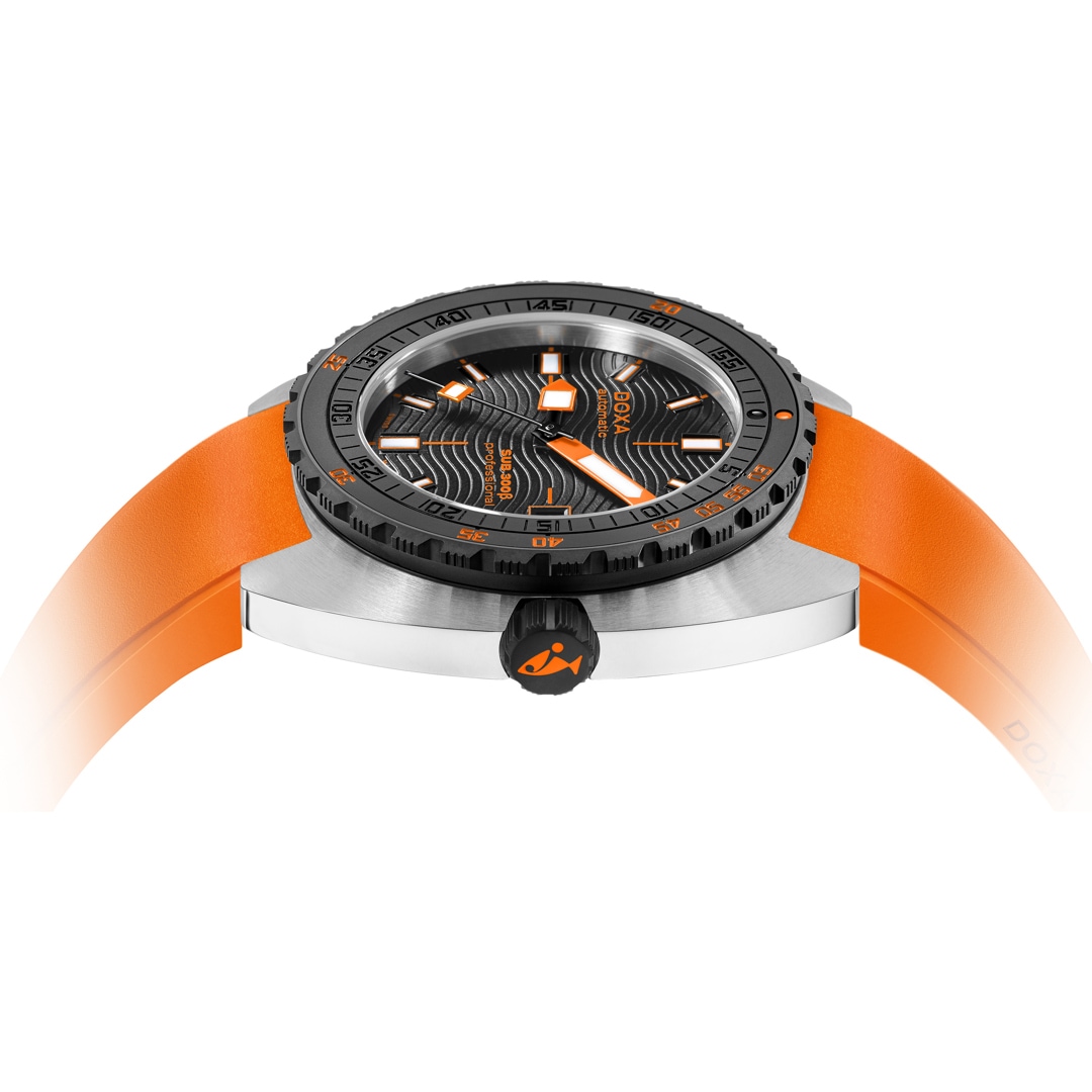 Ein besonderer Meilenstein in der Firmengeschichte war das Jahr 1967: DOXA präsentierte die erste Taucheruhr, die für die breite Öffentlichkeit erhältlich war. Sie verfügte über eine einseitig drehbare Lünette, die es ermöglichte, die Tauchzeit zu überwachen und einen sicheren Aufstieg ohne Dekompressionsstopps zu gewährleisten. Dank solcher radikalen Innovationen und dem charakteristischen orangefarbenen Zifferblatt wurde die DOXA SUB zur unverwechselbaren Legende.