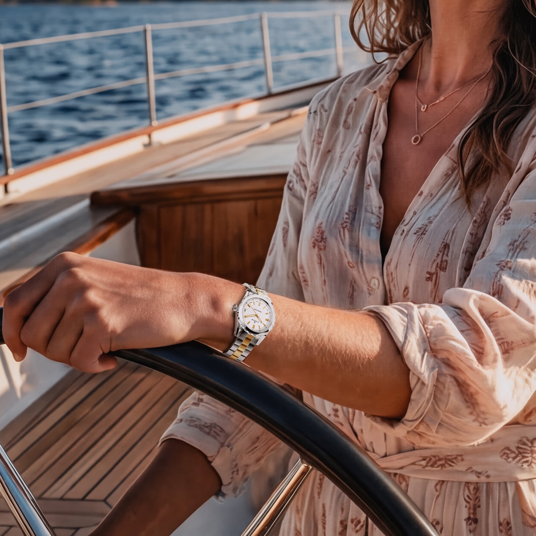 Die Edox Grand Ocean Kollektion verkörpert den kraftvollen Geist der Meere und spiegelt die tiefe Verbundenheit der Maison zu ihrem maritimen Erbe wider. Seit 1884 steht Edox als familiengeführter Schweizer Boutique-Uhrenhersteller für aussergewöhnliche Handwerkskunst und Tradition. Das neugestaltete, stromlinienförmige Gehäuse verbindet zeitlose Eleganz mit einer sportlichen Seele und sorgt für ein modernes Profil am Handgelenk. Ein markantes Highlight ist das strukturierte Zifferblatt mit Wellenmuster, das die dynamische Bewegung des Ozeans und dessen Rhythmus perfekt einfängt. Geschützt durch ein gewölbtes Saphirglas und ausgestattet mit einer verschraubten Krone, bietet der Zeitmesser eine beeindruckende Wasserdichtigkeit von bis zu 300 Metern. Dank Superluminova auf den Zeigern ist höchste Präzision in jeder Situation garantiert. Ein wahrer „Champion des Wassers“ für jeden Moment.