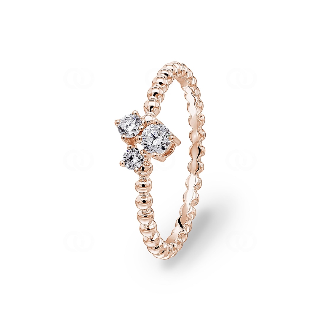 The delicate 18-carat rose gold band, featuring its distinctive beaded texture, highlights the modern charm of this piece and provides a unique tactile experience. This ring doesn’t tell the linear story of yesterday, today, and tomorrow, but celebrates the magic of those sparkling moments that make life extraordinary.