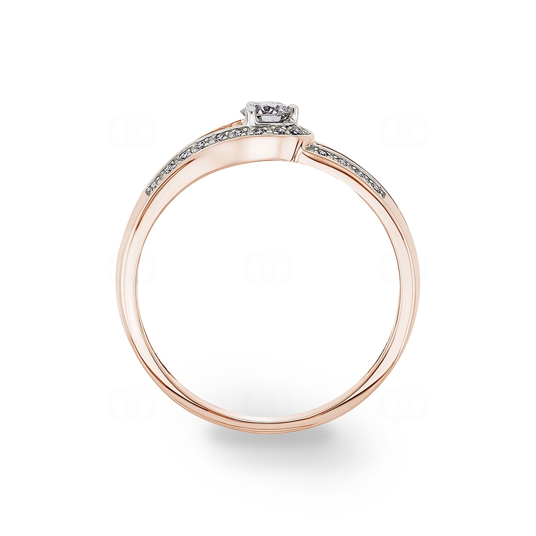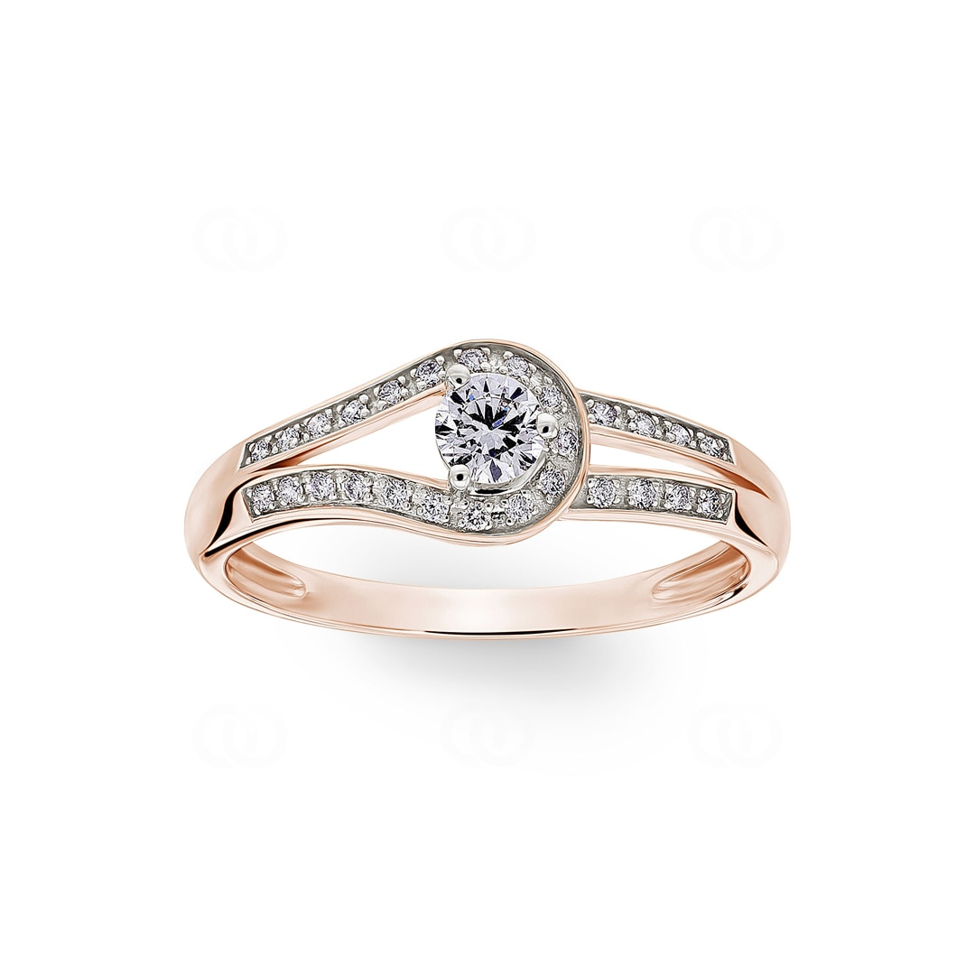 Sometimes, it only takes one glance to fall in love with a piece of jewelry. This ring in precious 18-karat rose gold captivates with a unique, organic shape, like a delicate swirl of light that draws the eye. A central, radiant diamond sits elegantly in the middle, embraced by two curved gold bands. These bands are artfully set with a total of 28 sparkling diamonds, softly surrounding the center stone and creating a stunning play of light. The gentle lines and intense sparkle combine into a design that is both modern and timeless.