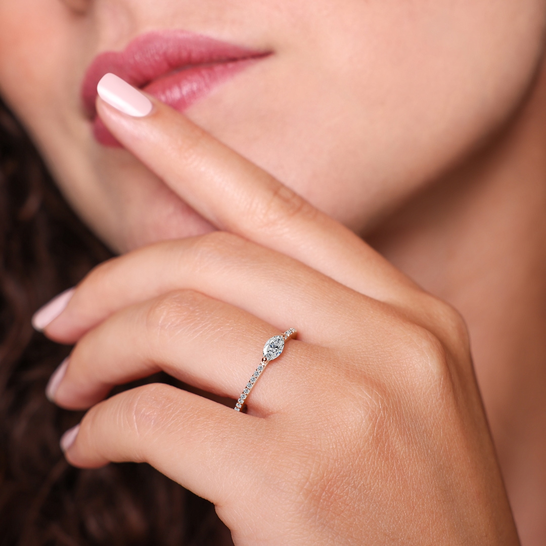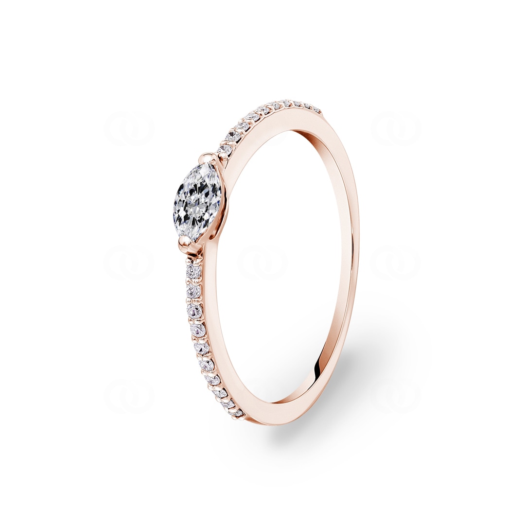 A symbol of everlasting love: this solitaire ring in 18-carat rose gold captures the essence of your special bond. A marquise-cut diamond weighing 0.21 carats shines in the centre—a sparkling expression of elegance and passion. Surrounded by 20 brilliant-cut diamonds on the ring band, the beauty of the centre diamond is further enhanced. Each brilliant-cut diamond has been carefully selected and precisely set to emphasise the timeless appeal of this unique ring.