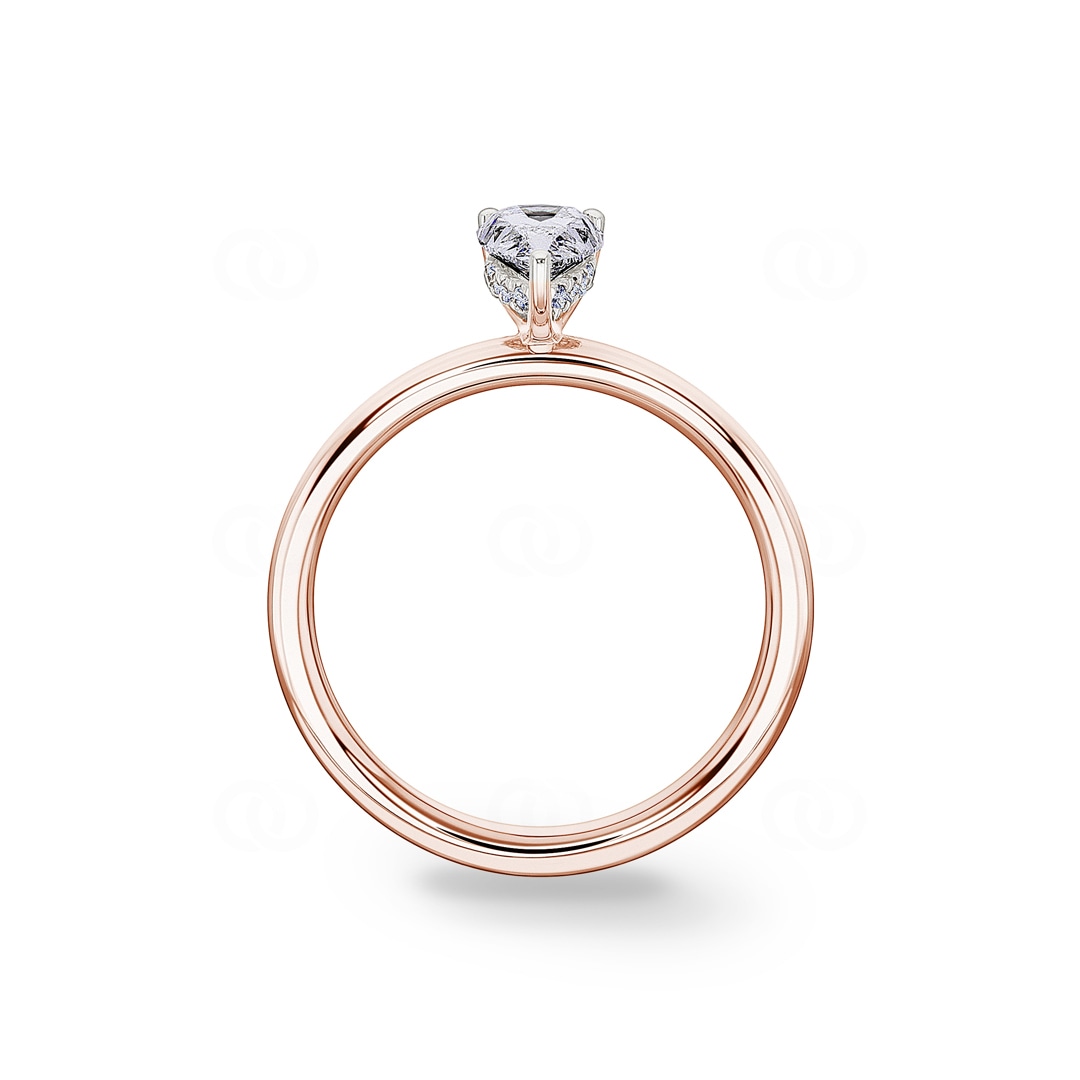 This exquisite 18-carat rose gold solitaire ring exudes timeless elegance and sophistication. A sparkling pear-cut diamond takes centre stage, its unique shape enhancing the beauty of the gem. The three-pronged setting provides a secure hold while allowing the diamond to shine in all its glory. A special highlight is the hidden halo: a delicate circle of 13 sparkling diamonds surrounds the main stone, adding an extra dimension of brilliance and sparkle. A true expression of love and luxury that makes every special moment unforgettable.