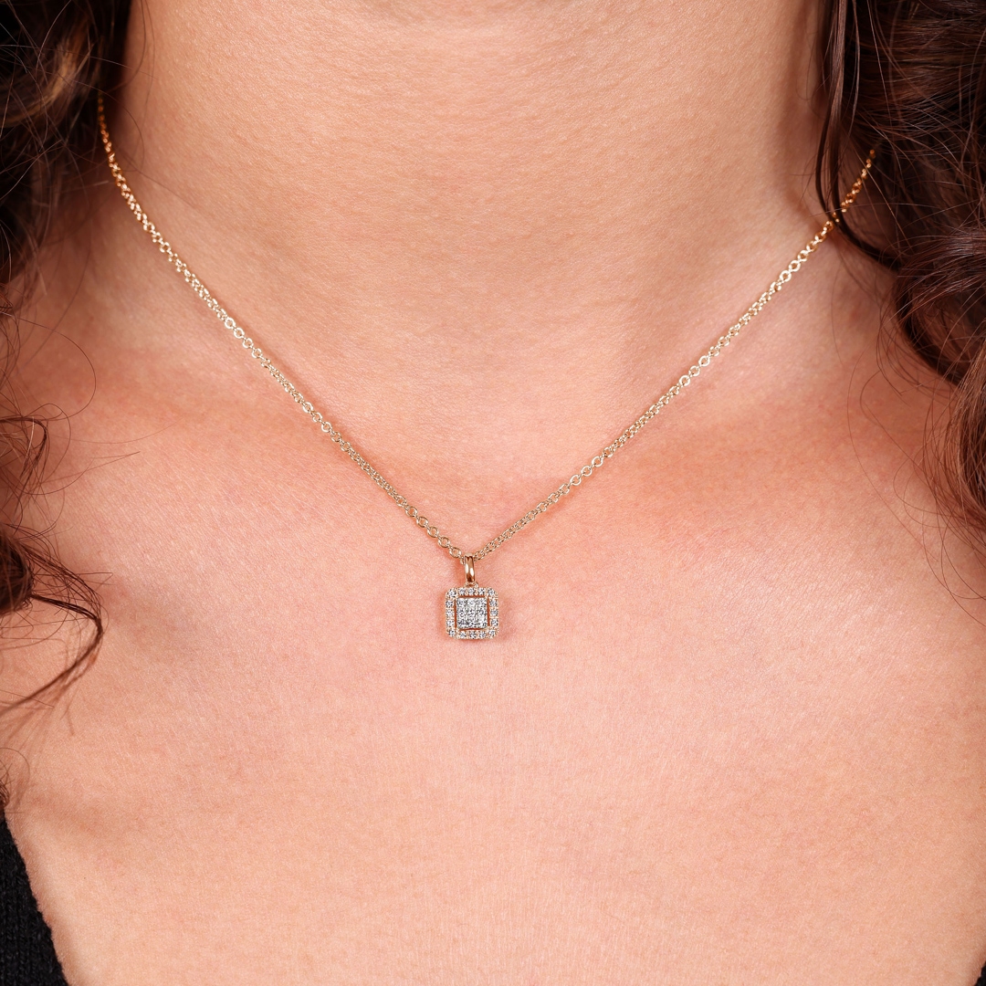 This elegant pendant is an absolute must-have for style-conscious women. Made from high-quality 18 carat rose gold, the pendant stands out with its eye-catching design. It is adorned with a total of 25 brilliant-cut diamonds, arranged in a striking square formation. The exquisite craftsmanship is undoubtedly remarkable, and this pendant is the perfect accessory to enhance any outfit and add a touch of luxury.