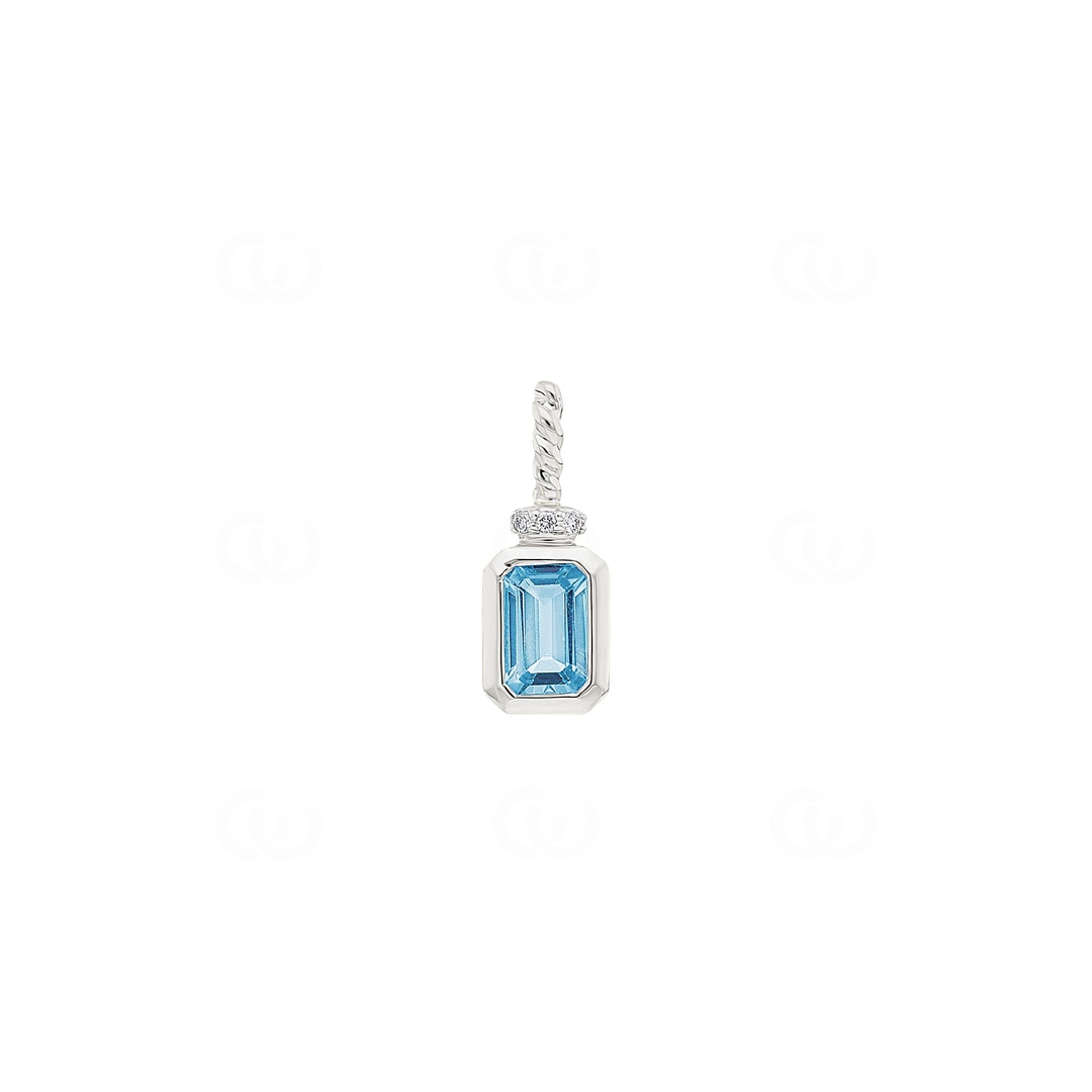 Pendant 750/18 K White Gold with Blue Topaz and Diamonds 0.01 ct H/si