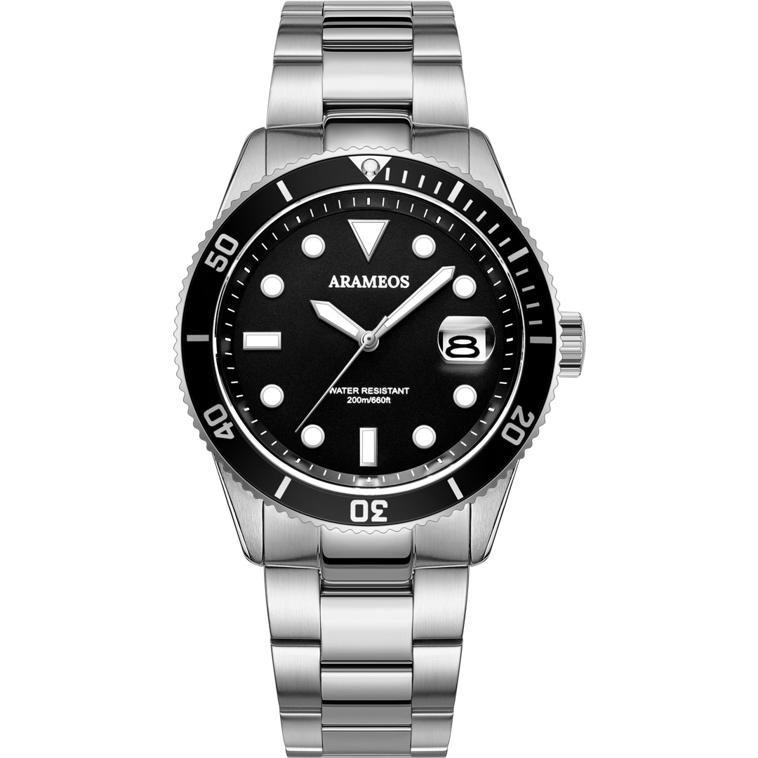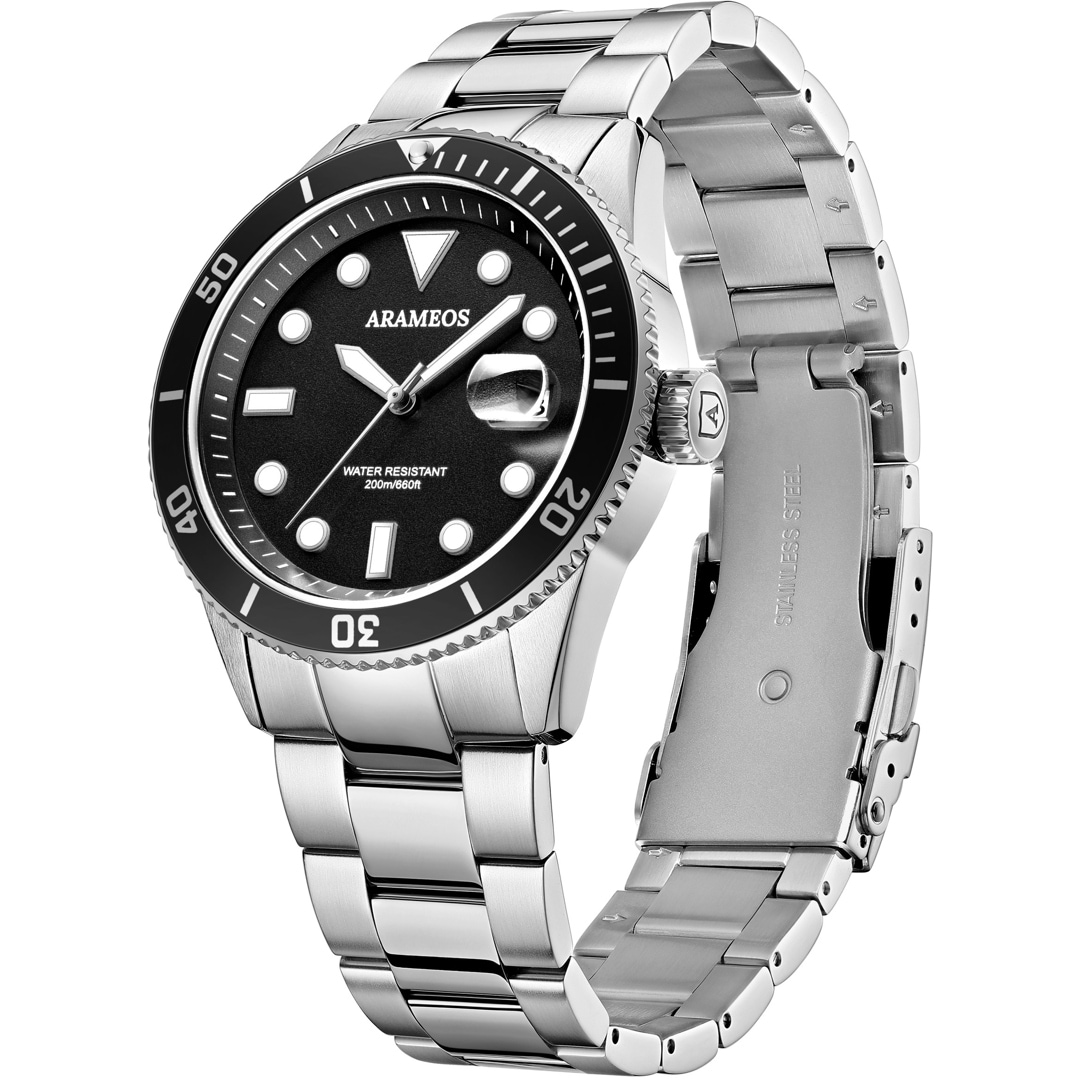 Master every depth with a timepiece created for extreme conditions and uncompromising style. The Arameos Atlantis Diver captivates with a precisely crafted 41-millimetre stainless steel case that maintains a perfect balance of striking presence and sporty elegance on the wrist. With impressive water resistance of 200 metres, this watch is not just a visual statement, but a genuine high-performance instrument for professional demands.