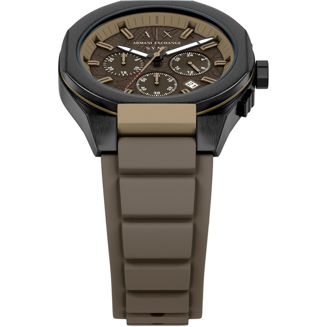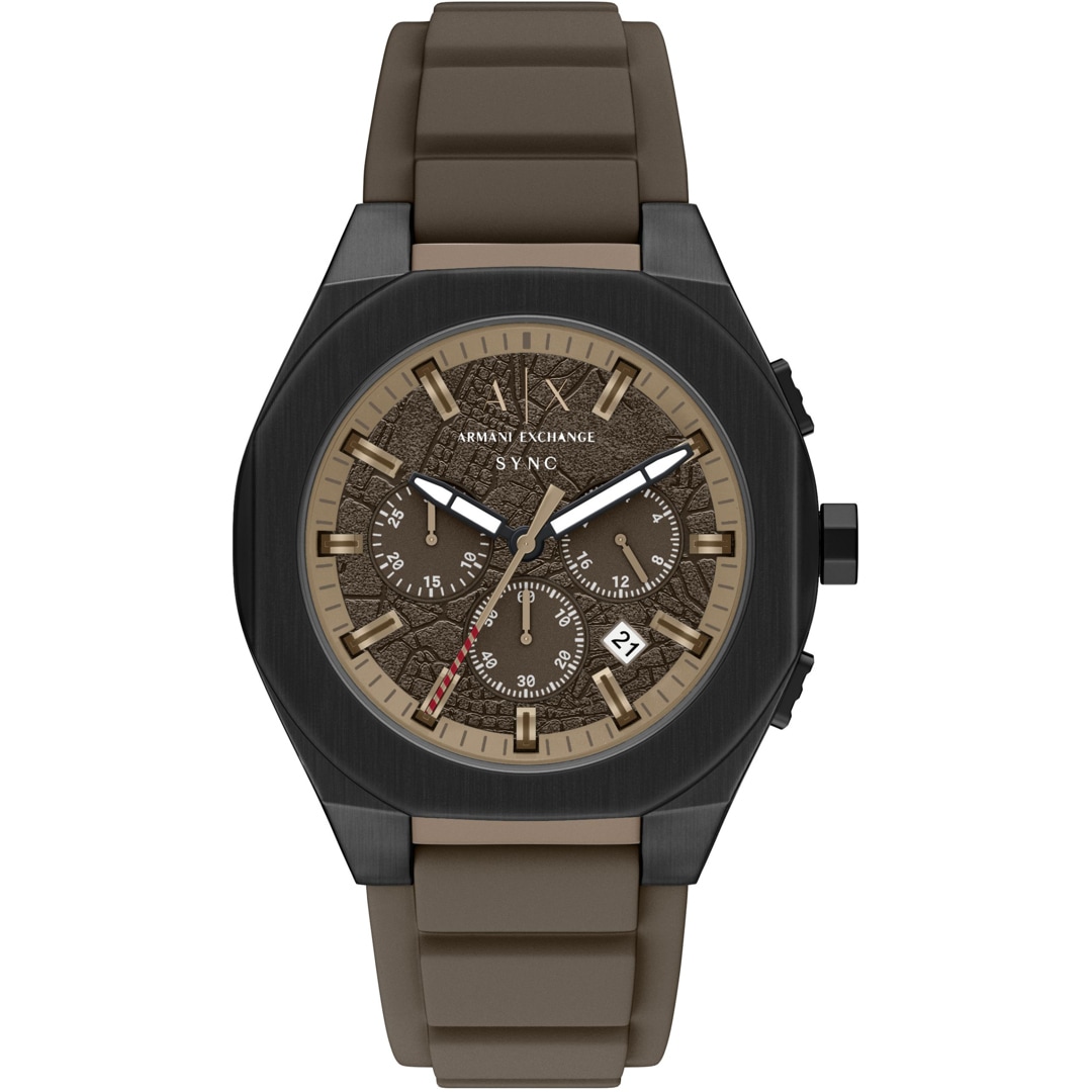 The Sync model from Armani Exchange is characterised by its clear structure and modern features. The stainless steel case, mineral glass and 50-metre water resistance, as well as the high-quality strap, are among the quality features of this men's watch from Armani Exchange, which perfectly combines casual sportiness and cool design. Date display and stopwatch are also included. Travel in style, enjoy your days off on holiday or shine at work.