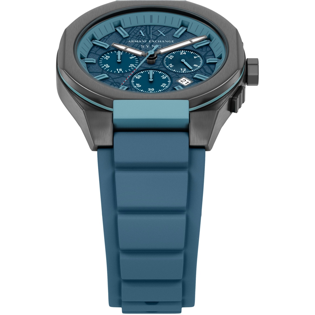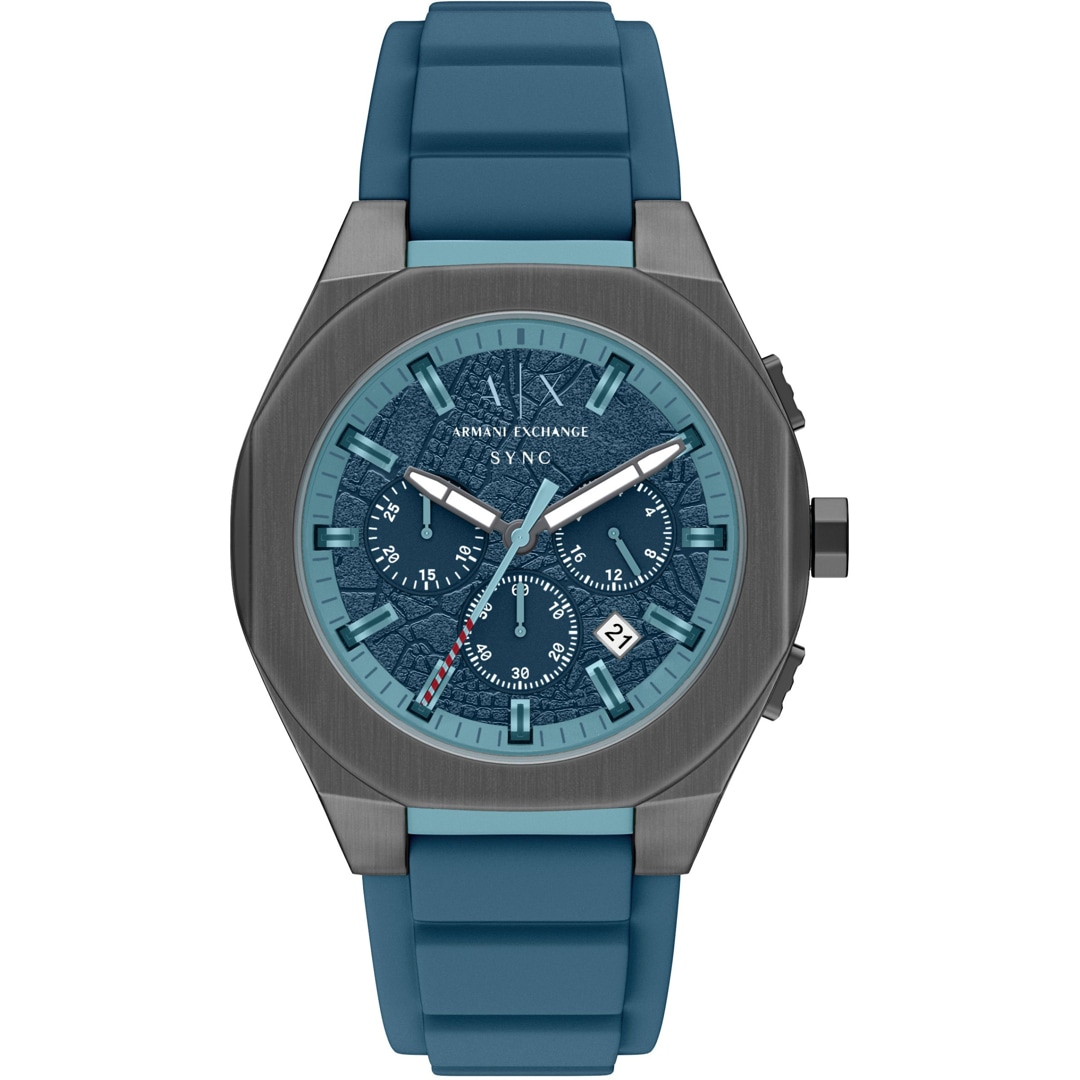 The Sync model from Armani Exchange is characterised by its clear structure and modern features. The stainless steel case, mineral glass and 50-metre water resistance, as well as the high-quality strap, are among the quality features of this men's watch from Armani Exchange, which perfectly combines casual sportiness and cool design. Date display and stopwatch are also included. Travel in style, enjoy your days off on holiday or shine at work.