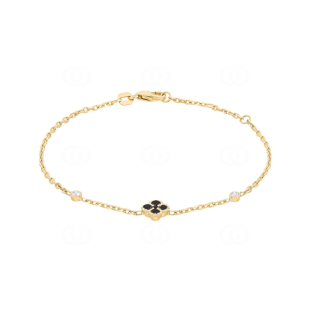 This filigree bracelet crafted from 18-carat yellow gold makes a strong fashion statement by combining classic symbolism with a modern, mystical aura. At the centre stands the clover motif, interpreted here in a completely new way: 5 black diamonds lend the pendant a deep, sophisticated elegance. This intense, dark tone is skilfully broken by 2 classic white diamonds, integrated as sparkling points of light into the delicate chain. The result is an exciting interplay of light and shadow. Perfect for women seeking jewellery with character and preferring a look that blends pure elegance with a dash of coolness.