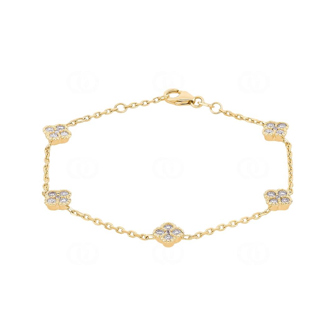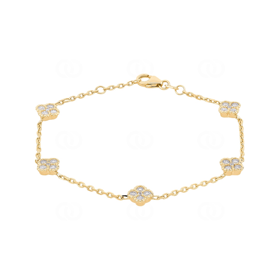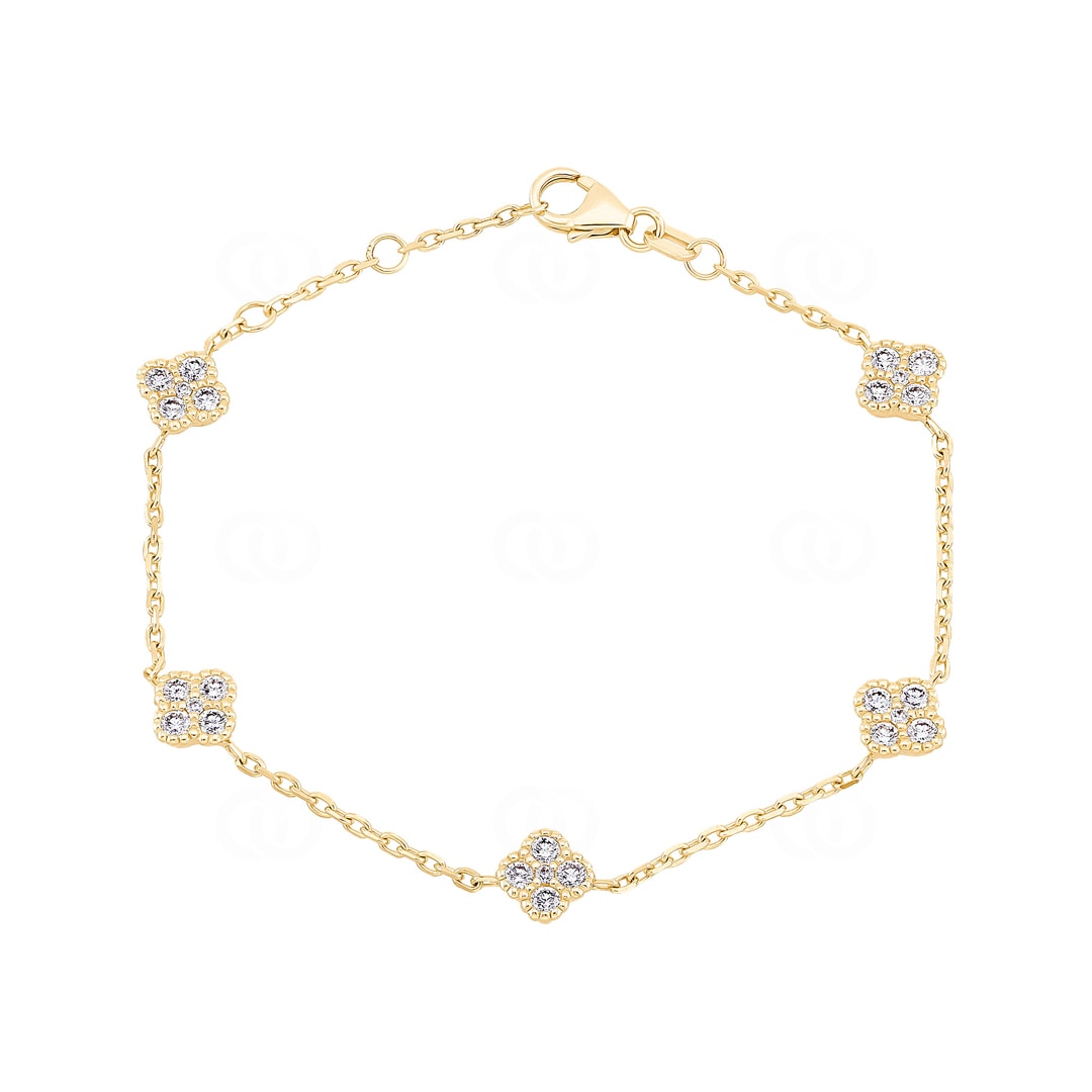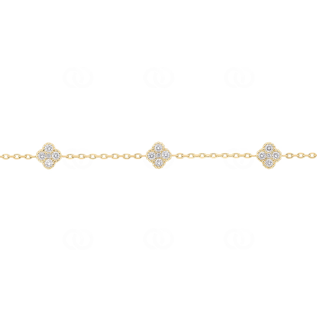 Bracelet 750/18 K Yellow Gold Cloverleaves with Diamonds 0.81 ct H/si