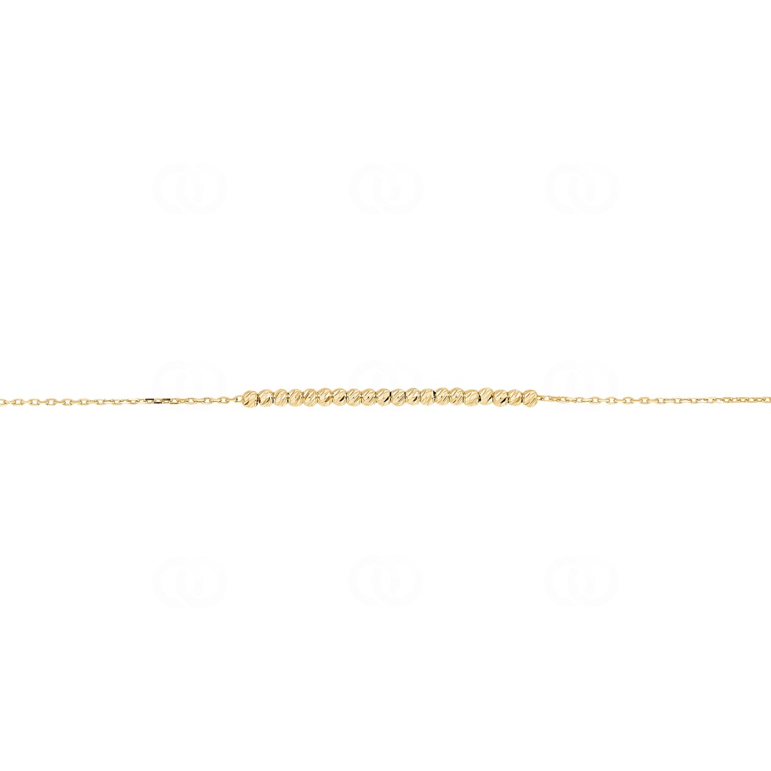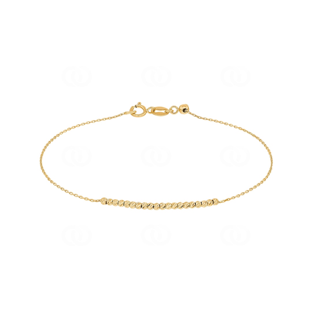Enjoy maximum freedom and timeless elegance with this delicate bracelet crafted from 750/18-carat yellow gold. The heart of the design is formed by a fine row of artfully diamond-cut beads, which sparkle beautifully when the light hits them, acting like a small bridge of gold. A special highlight is the refined sliding clasp, as it allows for infinite adjustment of the size. This ensures the piece of jewellery always nestles perfectly against your wrist, offering supreme comfort without slipping. Whether worn as a subtle soloist or combined in a trendy layered look, this bracelet is a versatile accessory that adapts anew to your life and style every day.