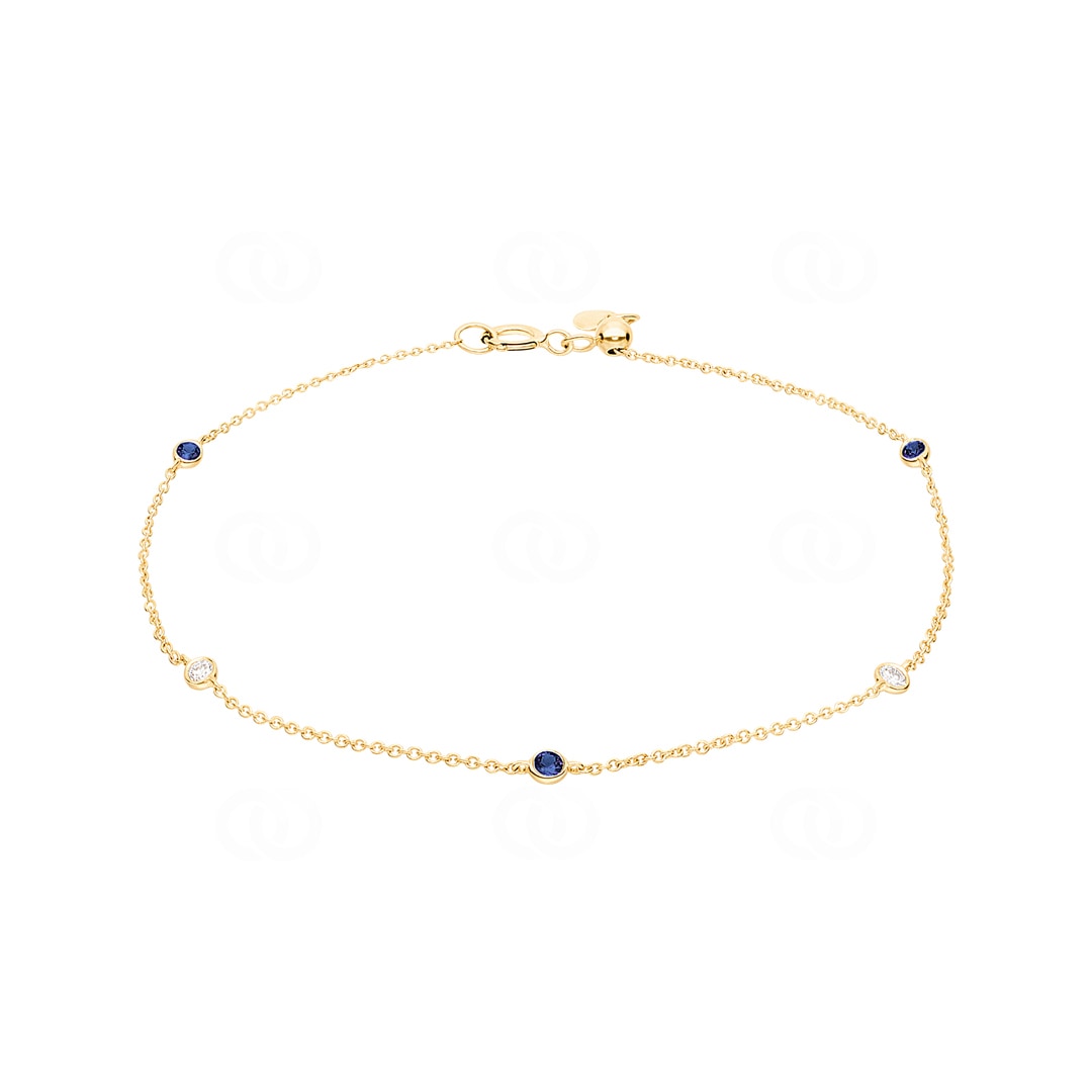 Bracelet 750/18 K Yellow Gold with Sapphires & Diamonds 0.06 ct H/si